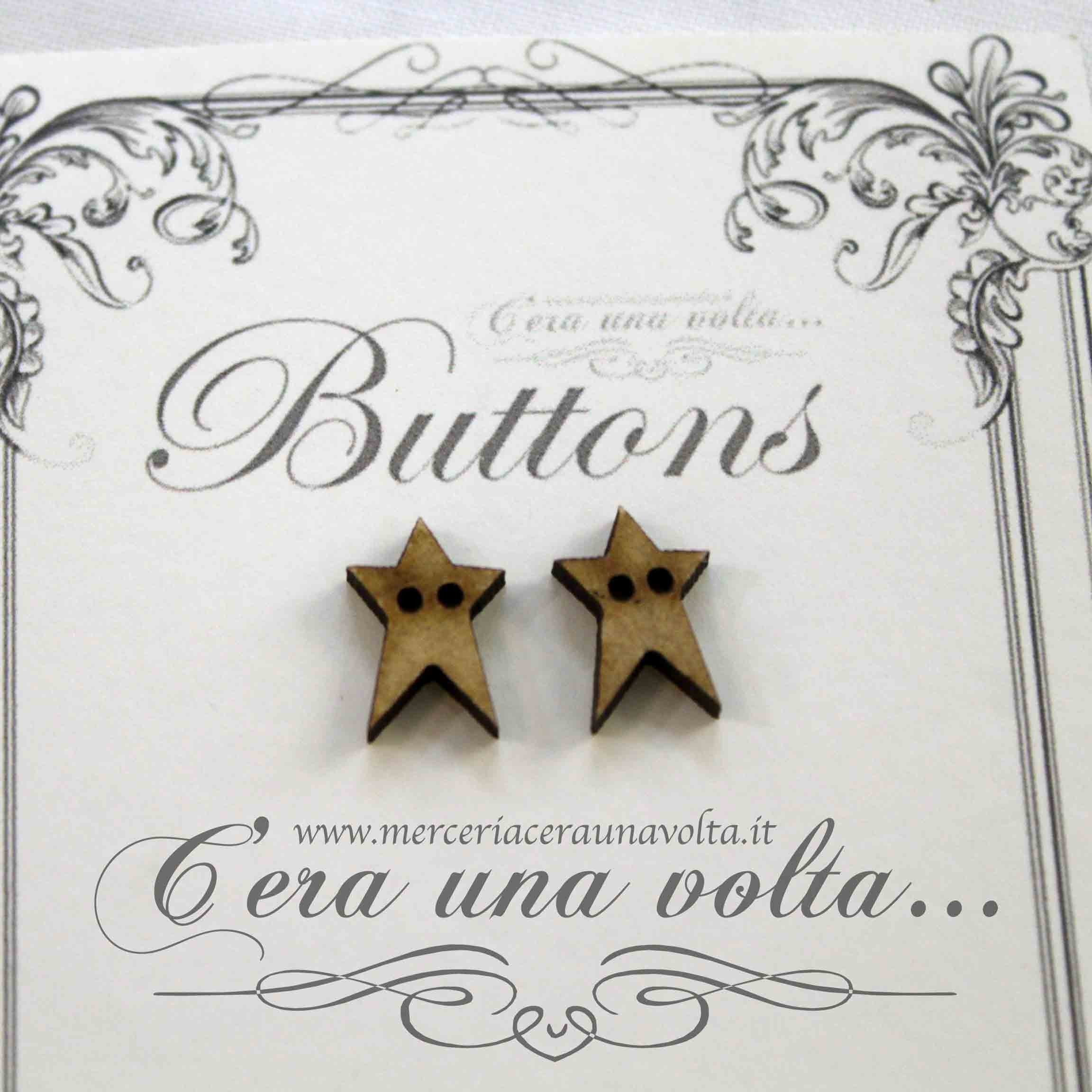 2 pz Bottoni primitive stella in legno 2 fori