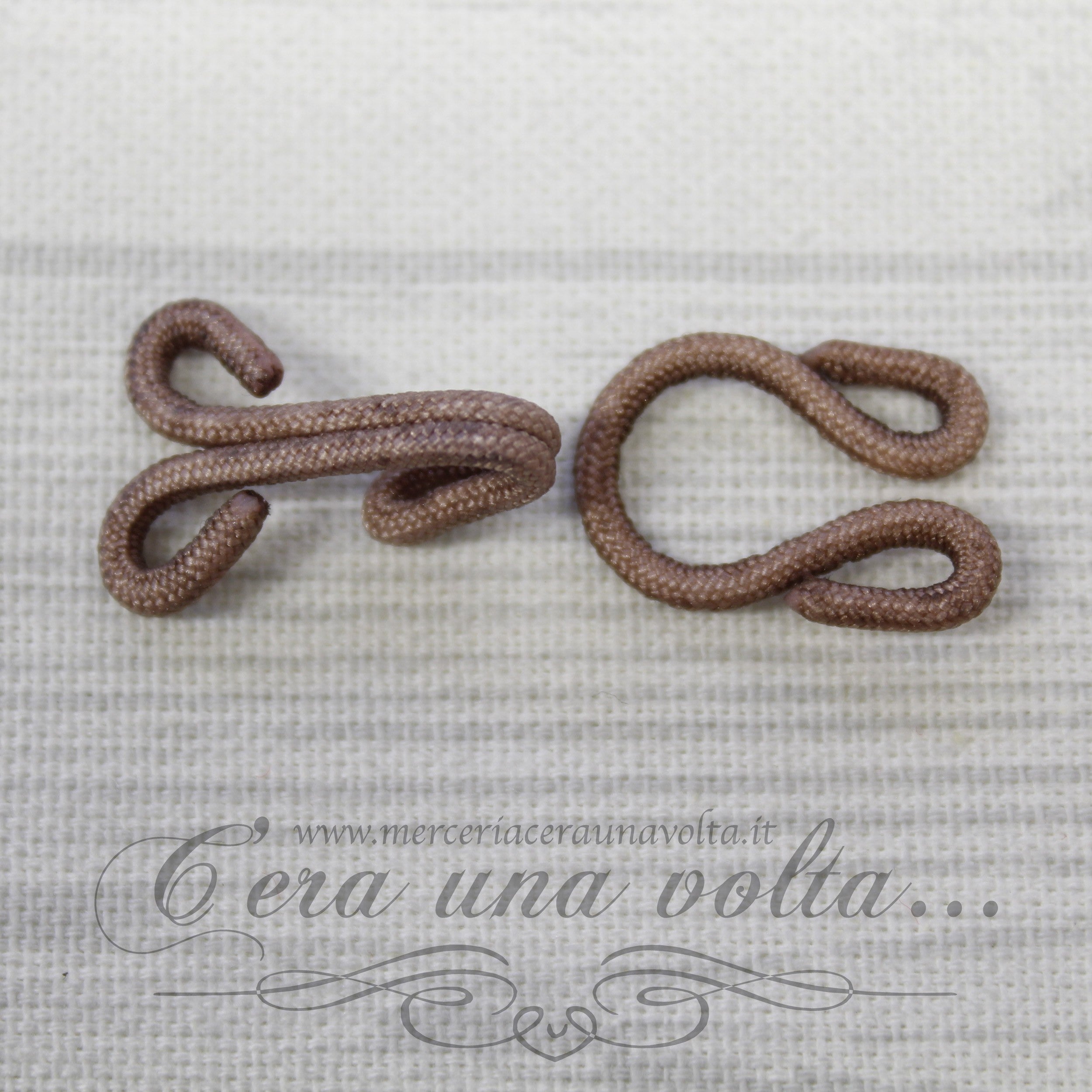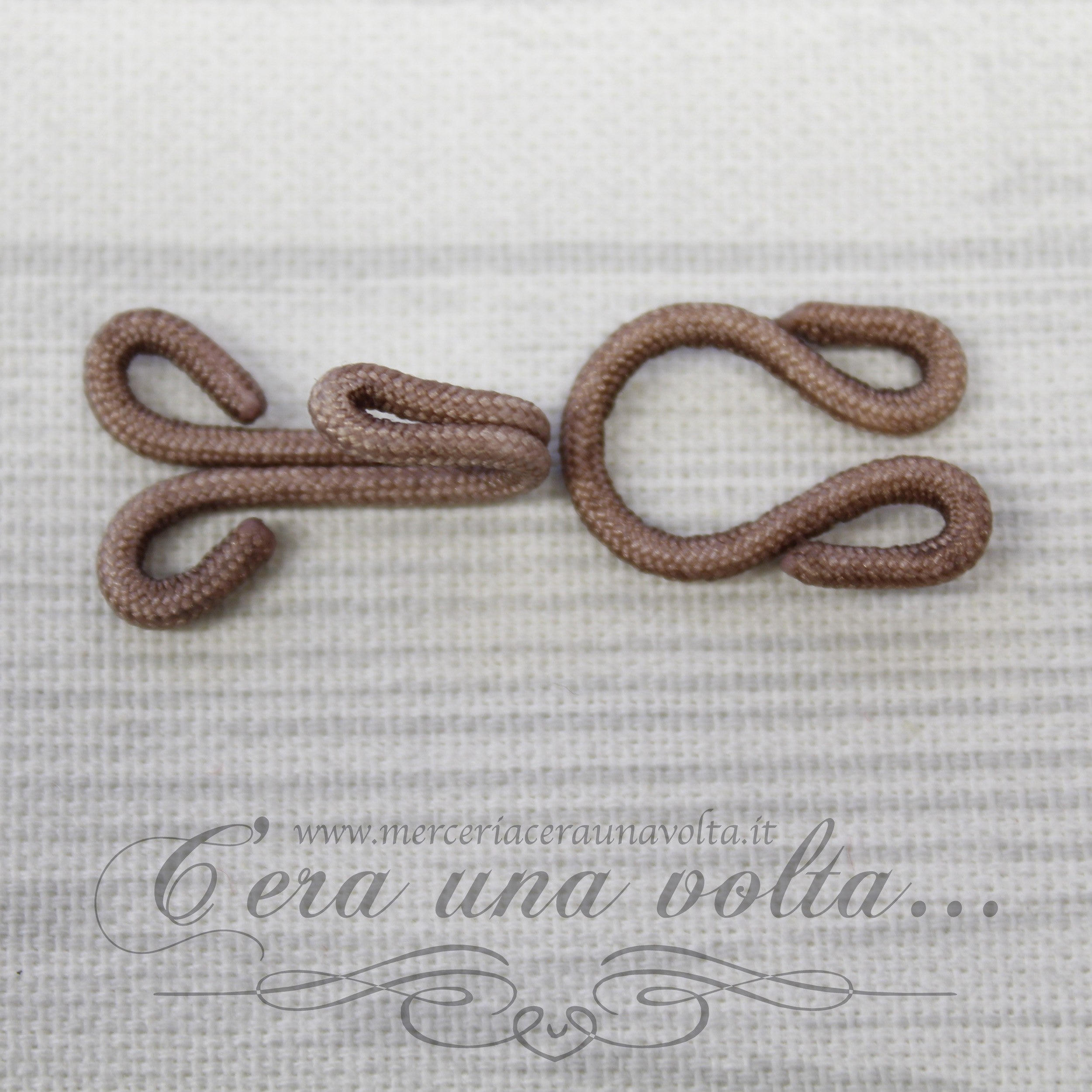 Grazie alla loro particolare copertura con passamaneria color biscotto, gli occhielli con ganci rivestiti sono particolarmente indicate per la chiusura di capi in lana, pellicce, ecopelle e camoscio.