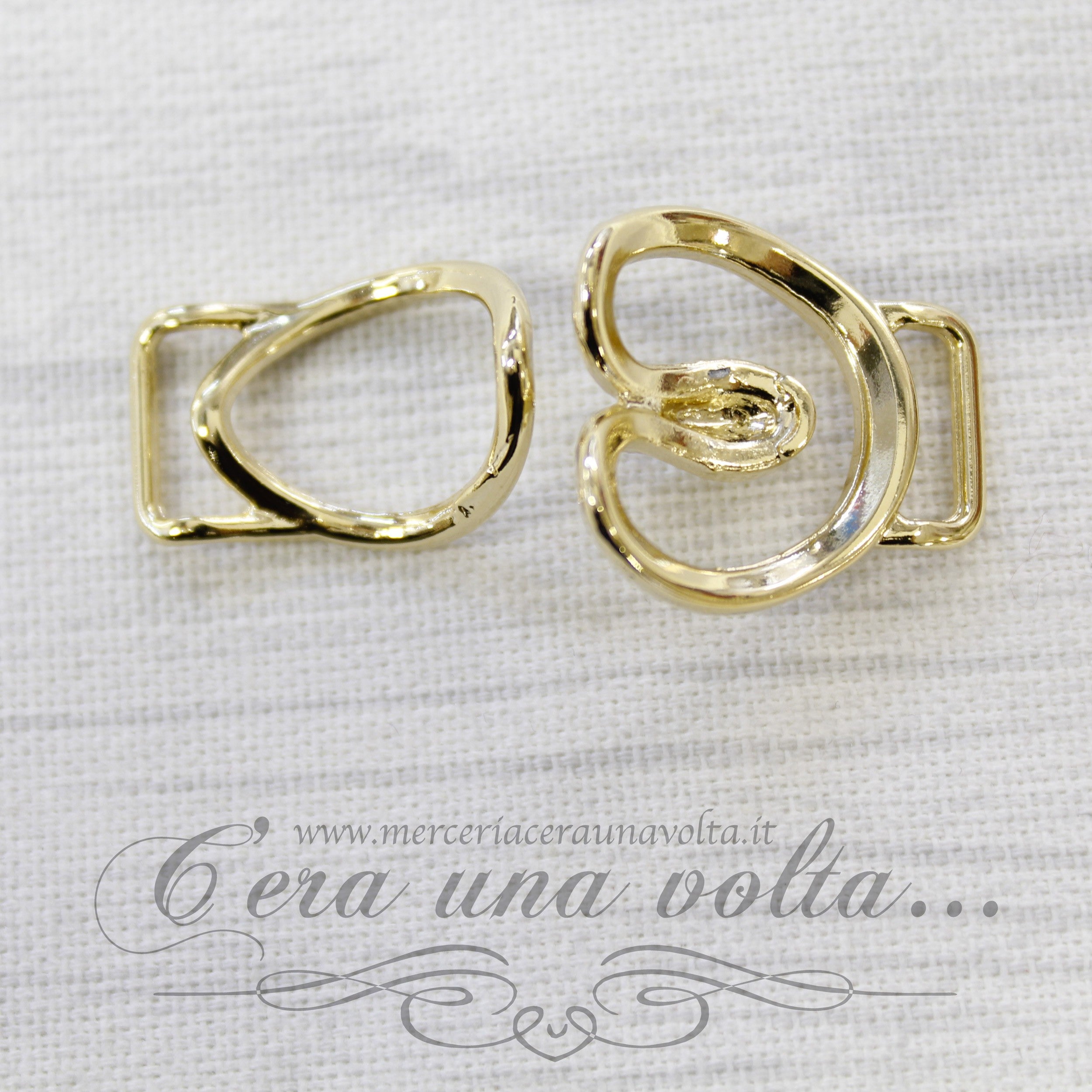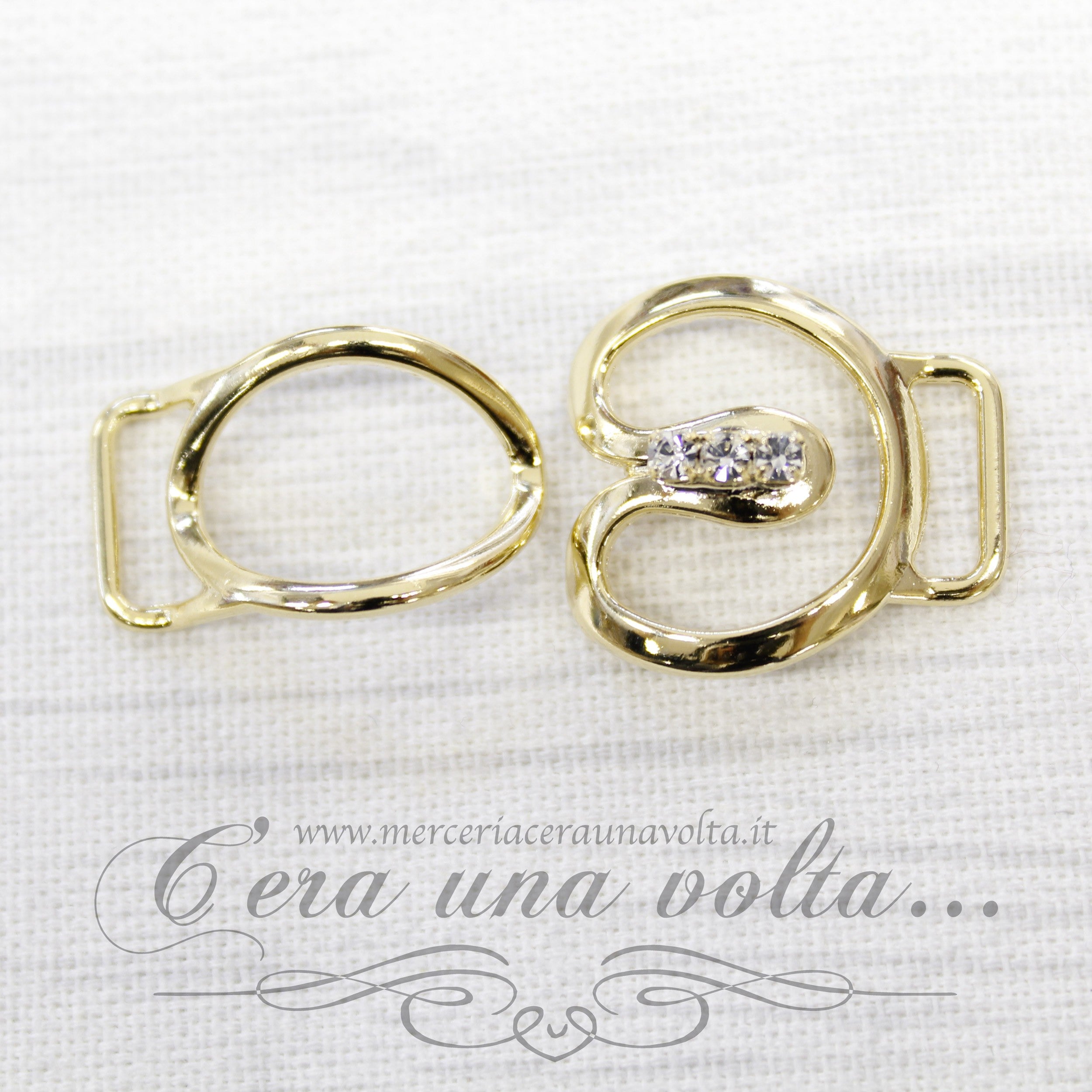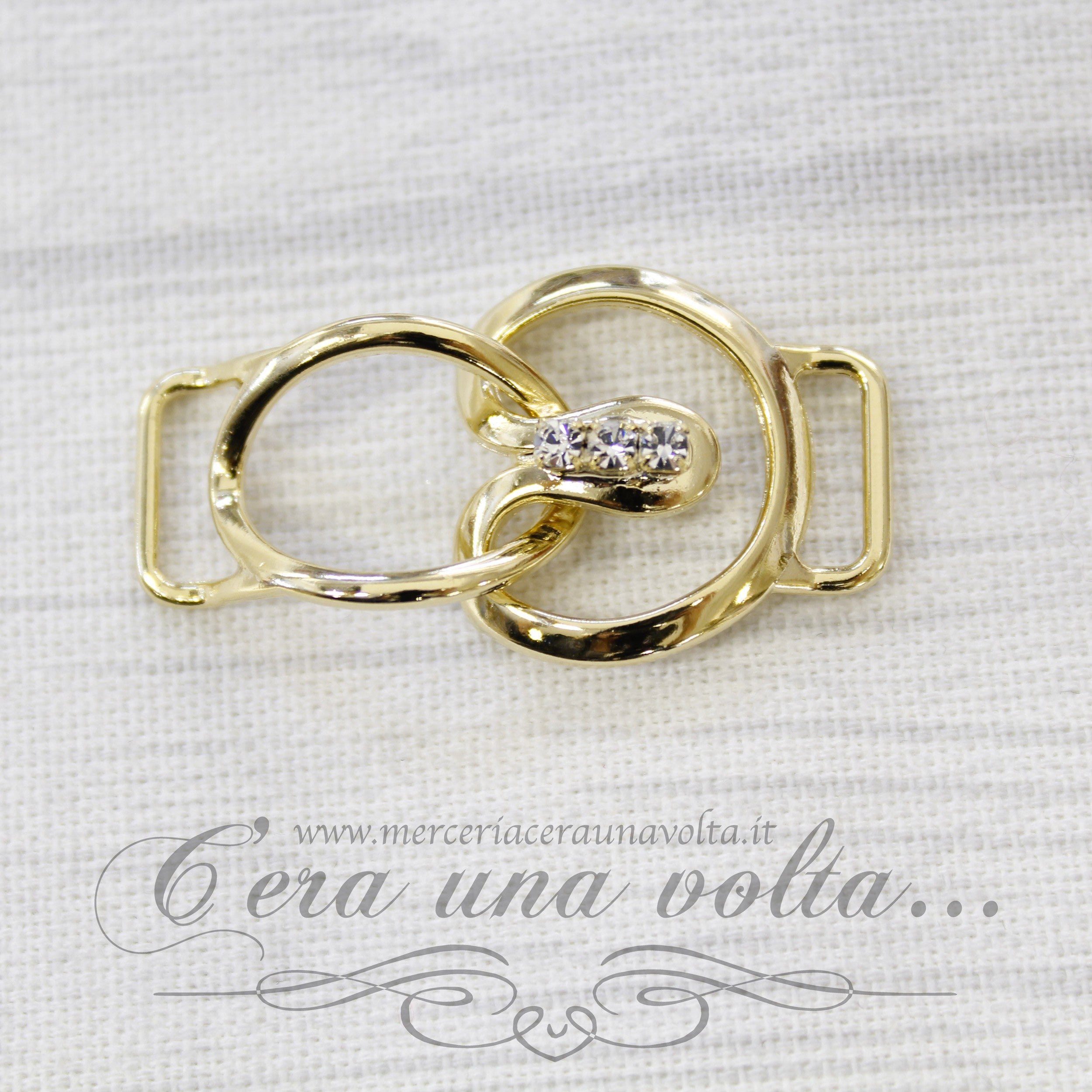 Agganciature per abbigliamento con strass centrali che si intersecano, composto da 2 elementiColore OroMisura h 2,5 cm x 4 cmMateriale metallo...