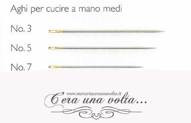 Aghi per cucire a mano medi, con teste salvadita prive di sbavature, superficie affinate e senza pori per fornire un'eccellente scorrevolezza e un'ottimale resistenza alla corrosione. Qualità extra a livello internazionale