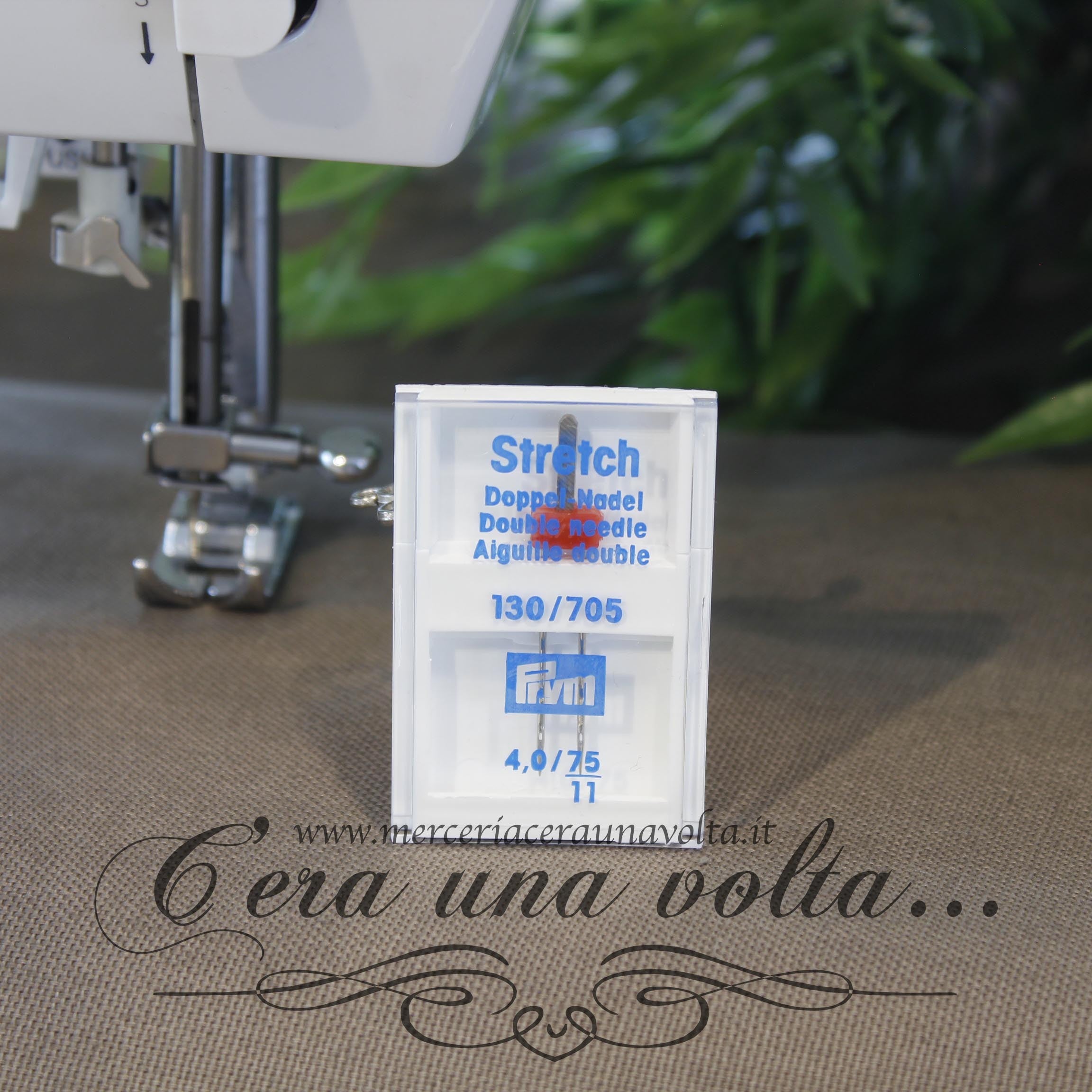 Ago gemello stretch per macchina da cucire 4,0/75 testa piatta, con attacco universale, ago da 75 con passo da 4 mm adatto per cuciture doppie e decorative, orli e overlock, con punta a pallina per cucire senza tirare i fili e saltare i punti.