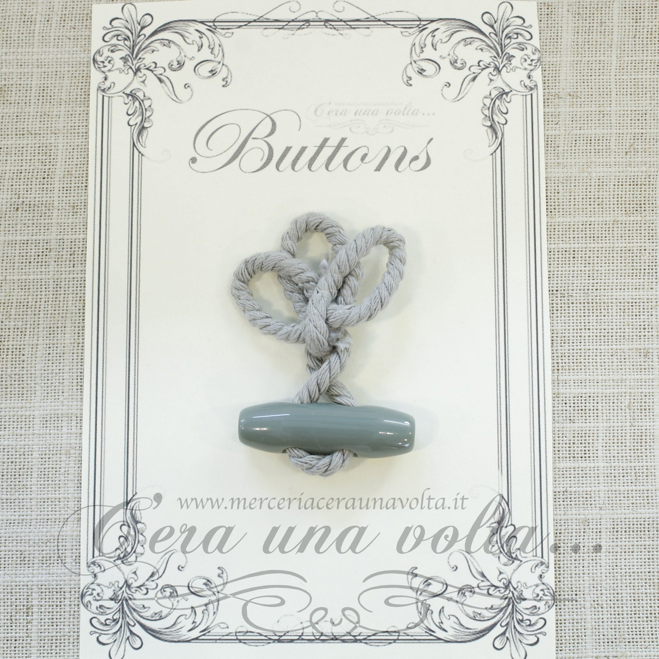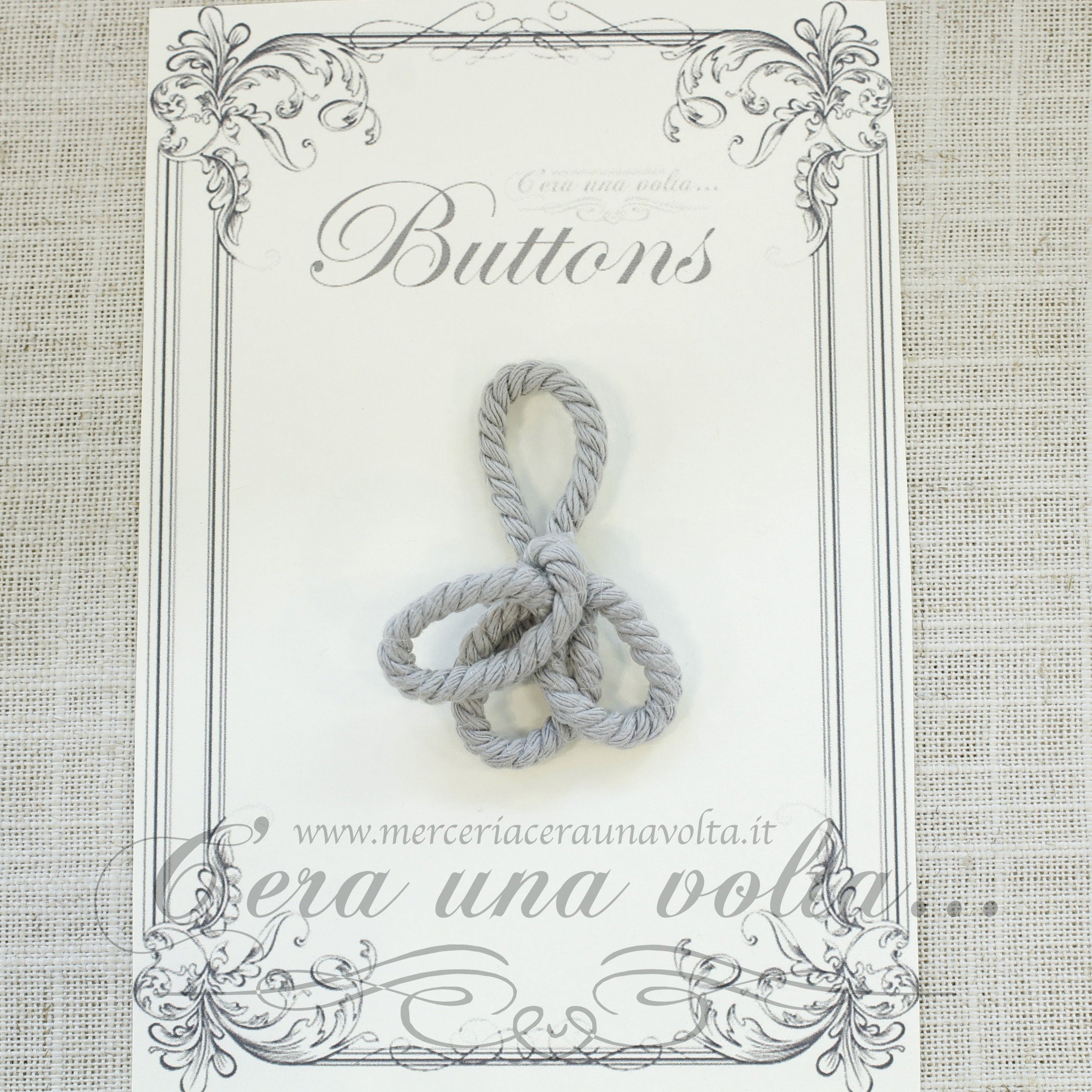 Allacciatura per abbigliamento formata da due parti: una con cordicella ripiegata a formare un'occhiello, l'altra con un bottone che andrà inserito nella prima, in cotone ritorto, con bottone in poliestere a due fori, adatto per abbigliamento e Montgomery