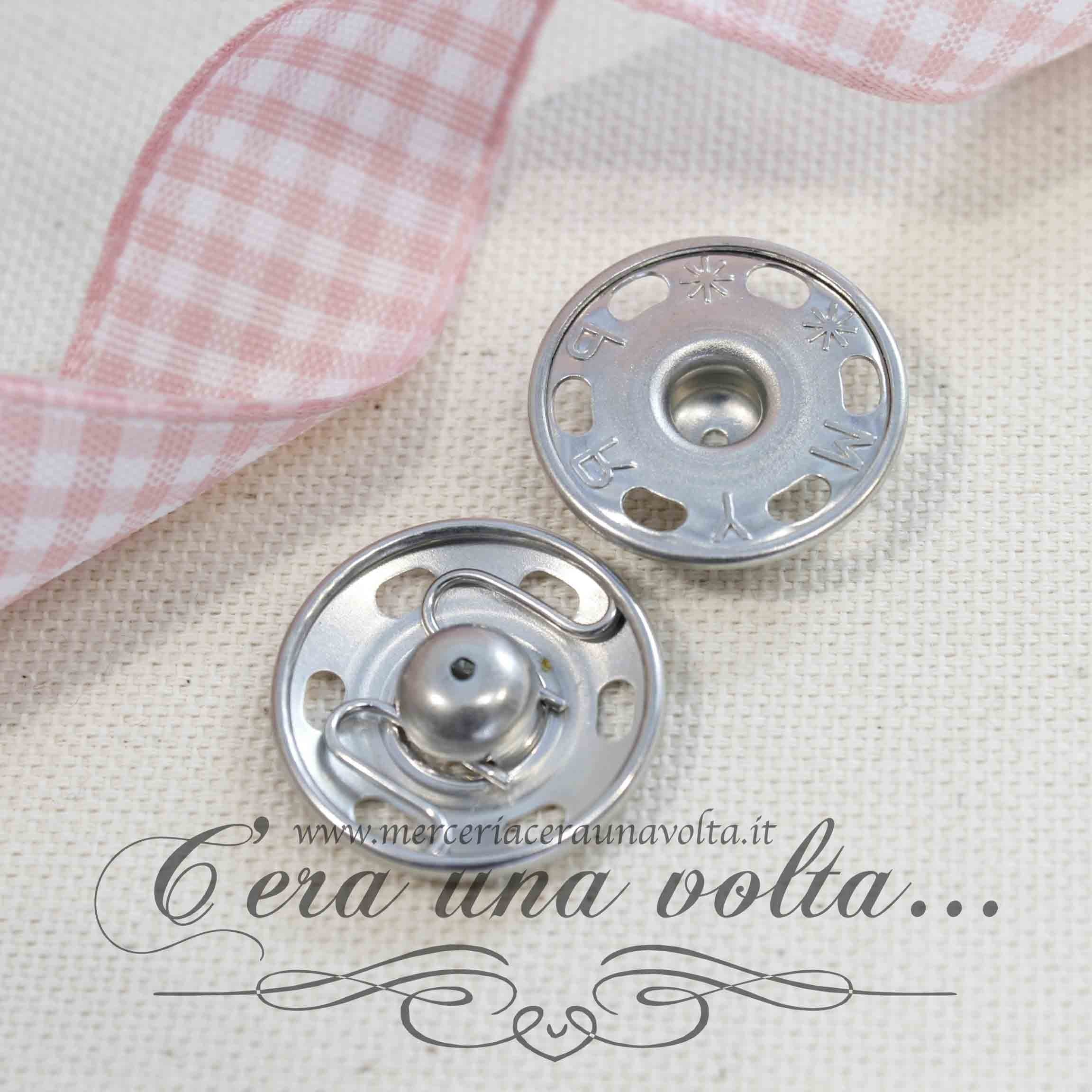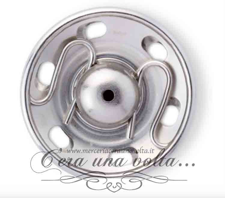 Bottone automatico con foro di posizione, la parte inferiore ha il bordo arrotondato, quindi non presenta spigoli vivi. la stoffa è così protetta da ogni danno. La molla a esse accuratamente lavorata e incastonata è una garanzia di una forza di chiusura e apertura del bottone senza variazioni nel tempo. Si utilizza per l'abbigliamento, il cucito creativo, accessori per la casa e per il fai da te. In acciaio inossidabile, possono essere lavati a 60°