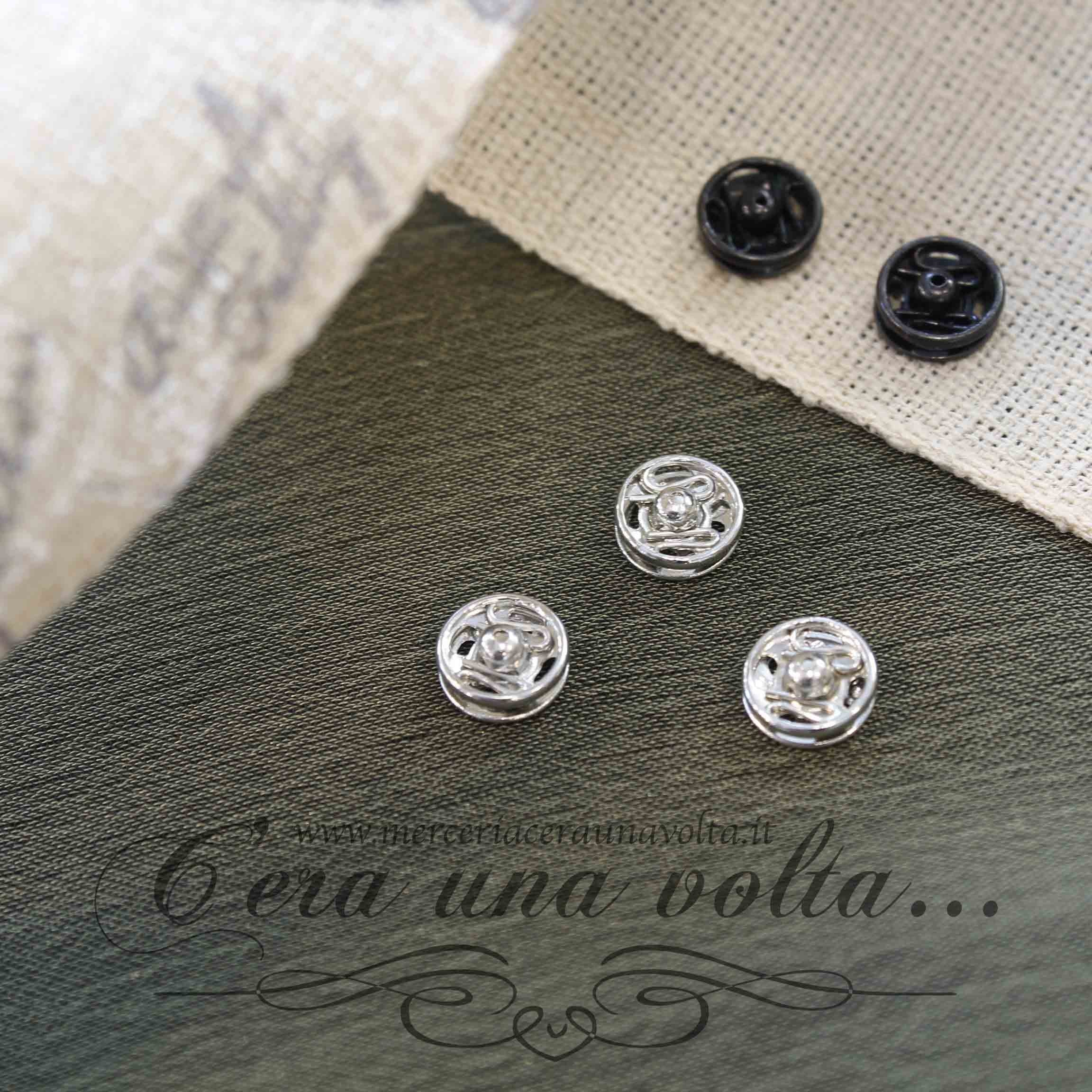 Bottone automatico con foro di posizione, la parte inferiore ha il bordo arrotondato, quindi non presenta spigoli vivi. la stoffa è così protetta da ogni danno. La molla a esse accuratamente lavorata e incastonata è una garanzia di una forza di chiusura e apertura del bottone senza variazioni nel tempo. Si utilizza per l'abbigliamento, il cucito creativo, accessori per la casa e per il fai da te. In acciaio inossidabile, possono essere lavati a 60°