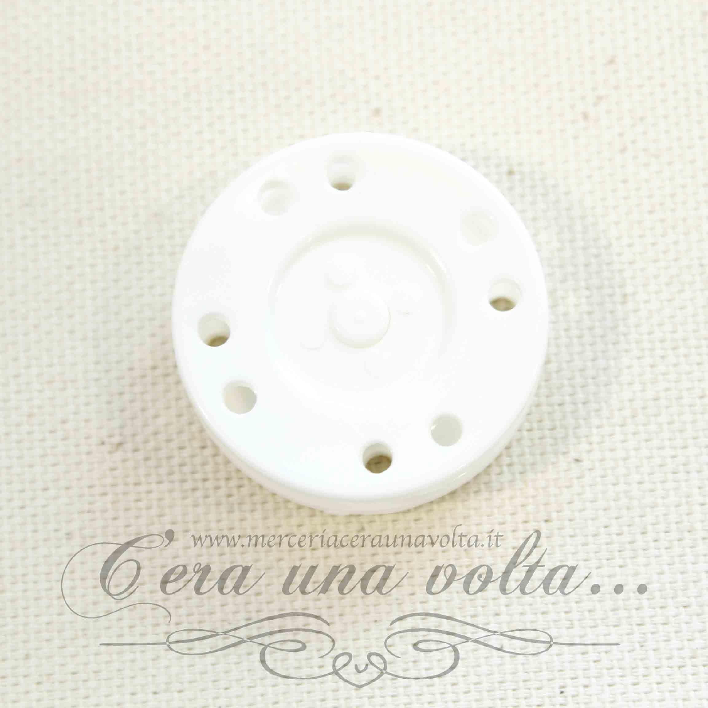 Bottone automatico resinato, con foro di posizione, la parte inferiore ha il bordo arrotondato, quindi non presenta spigoli vivi, la stoffa è così protetta da ogni danno. Si utilizza per l'abbigliamento, il cucito creativo, accessori per la casa e per il fai da te. Disponibile in 3 varianti.