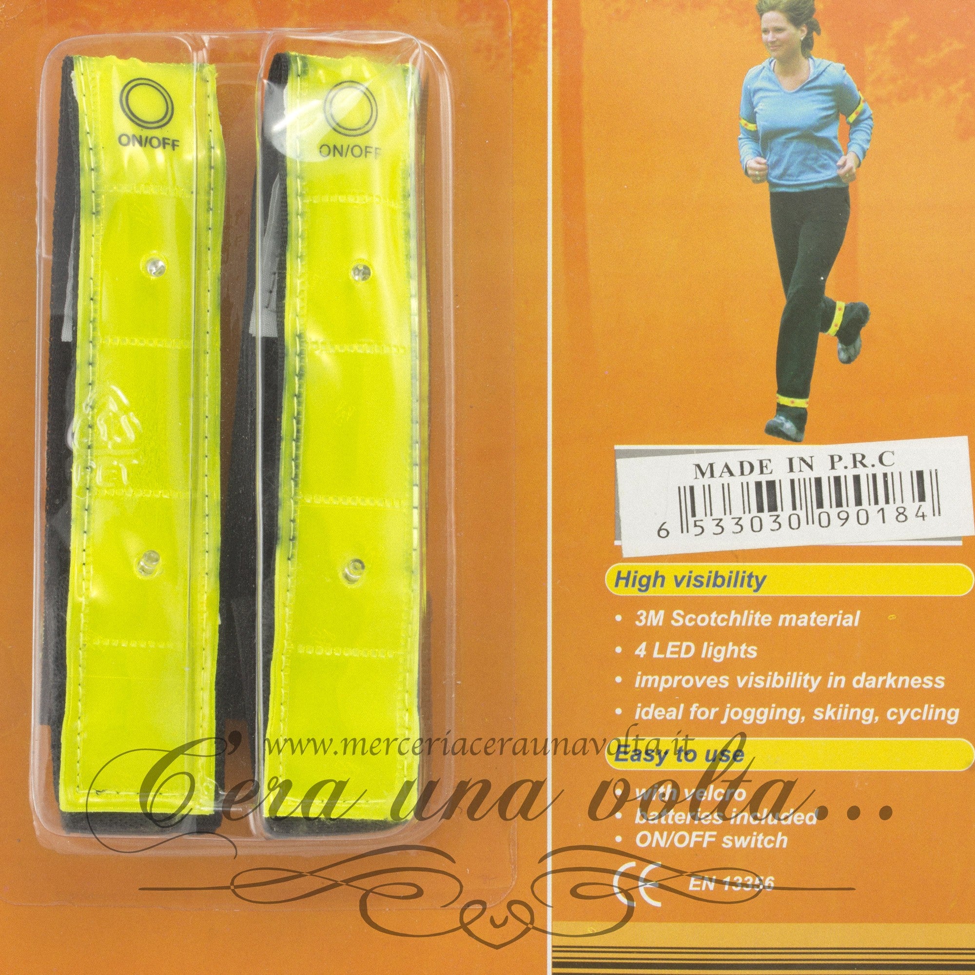 Coppia fasce elasticizzate con chiusura in velcro regolabile, per braccia o gambe, riflettente con LED. Batteria inclusa: 1 x CR2032 -...