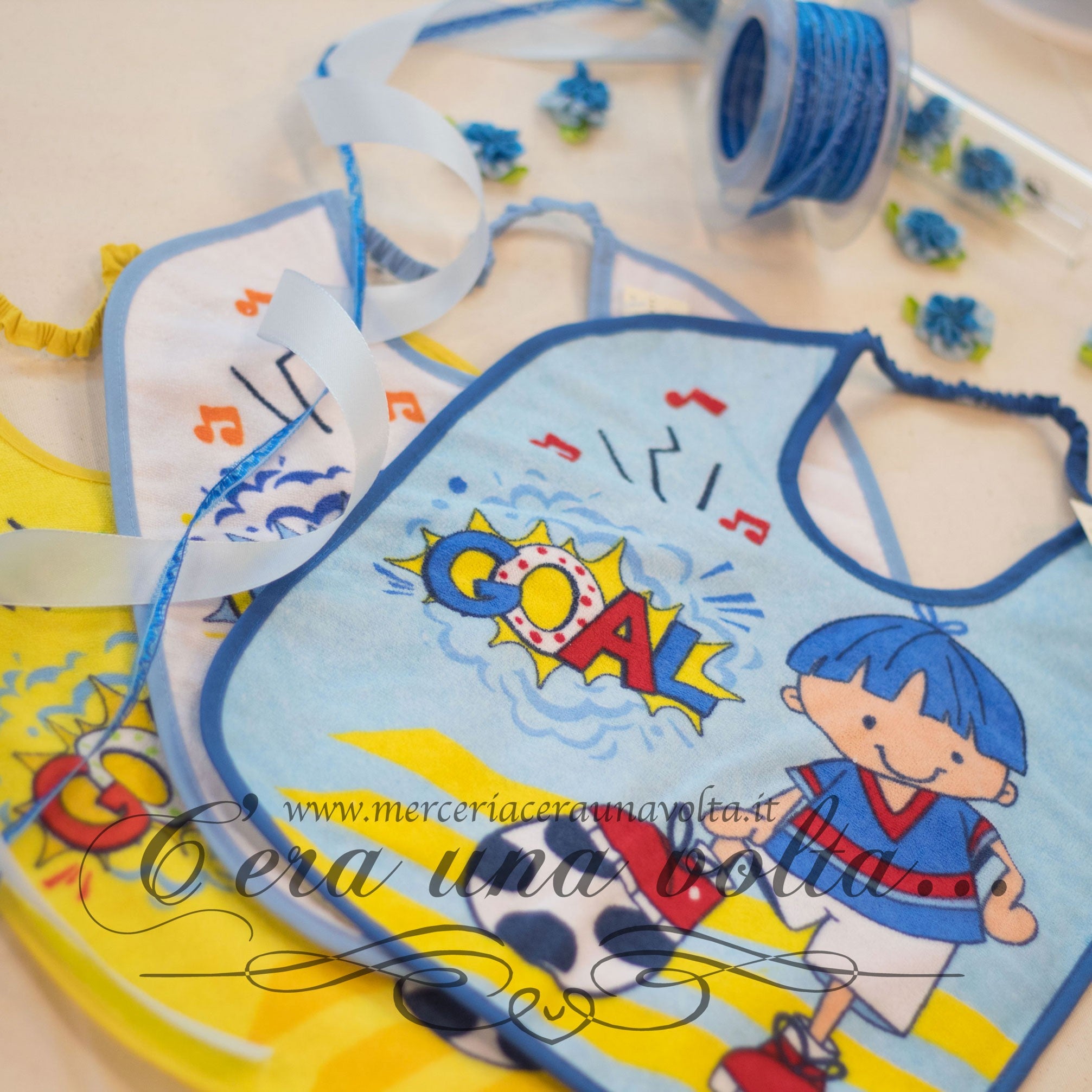Bavaglino asilo con simpatica stampa, sul davanti in morbido cotone, retro impermeabile per impedire di macchiare, bagnare o sporcare i vestitini, elastico sul collo e rifinitura con fettuccia in cotone su tutto il perimetro. Disponibile in tre varianti: