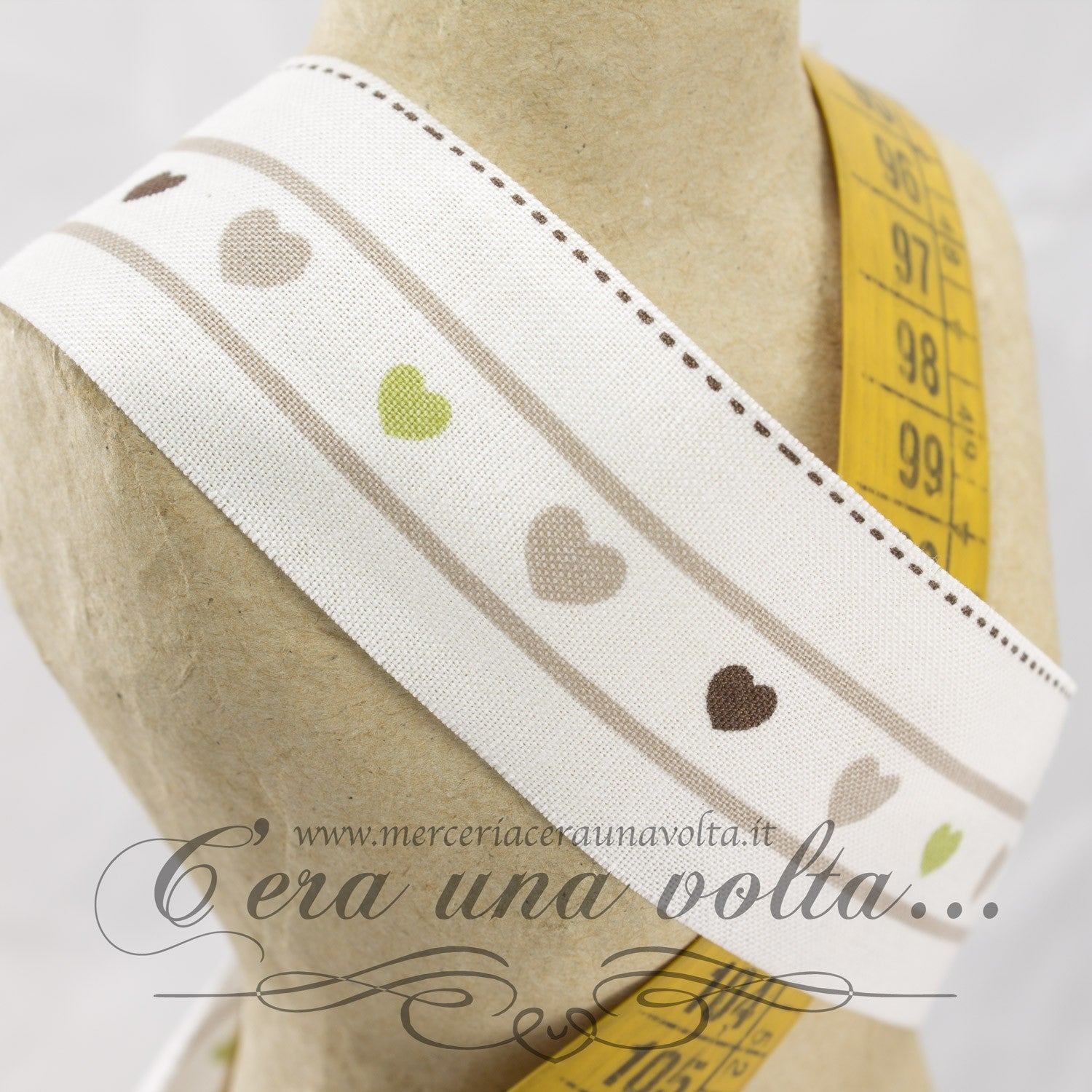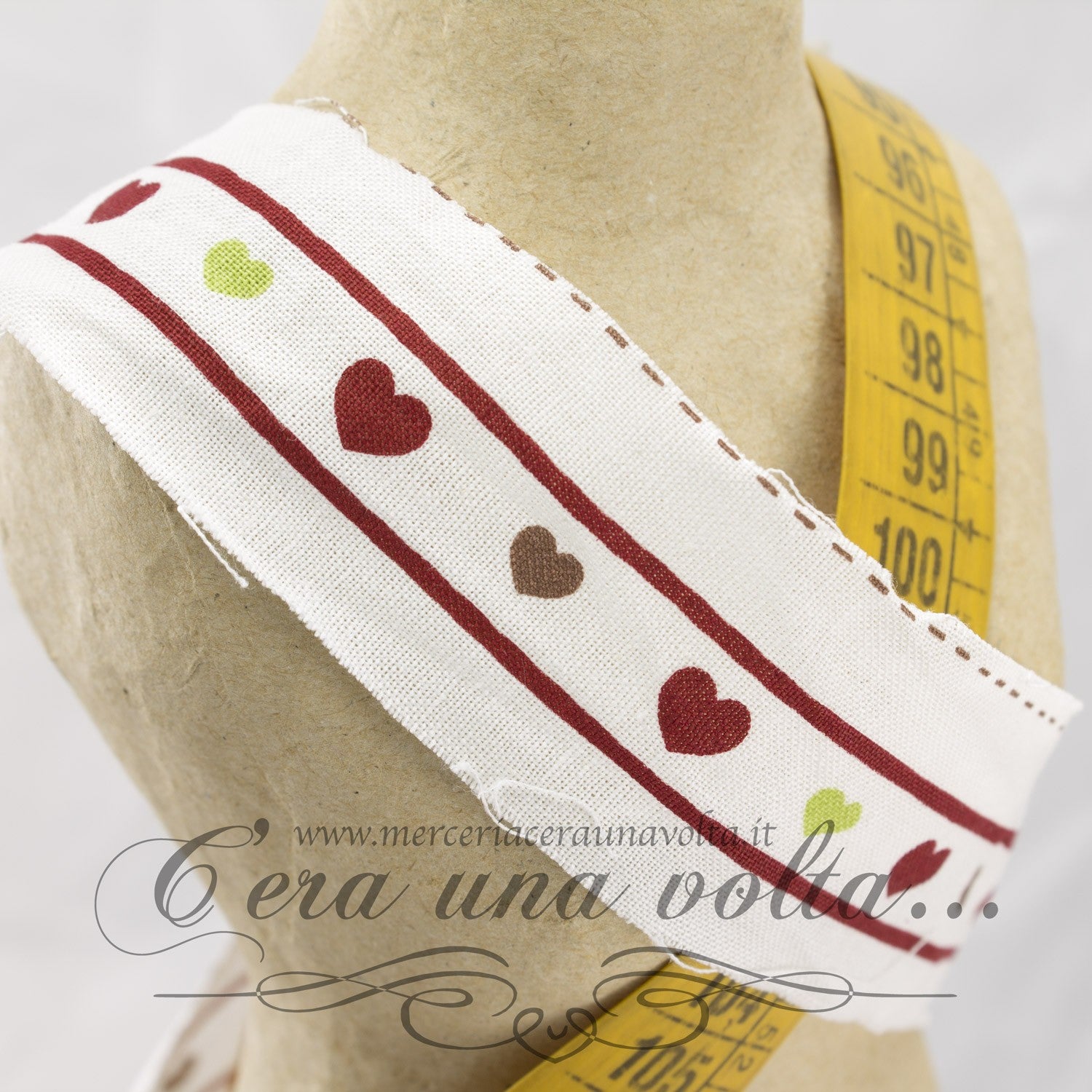 Bordo in cotone cuori disponibile in 2 varianti su fondo bianco antico, il bordo non è rifinito ai lati.