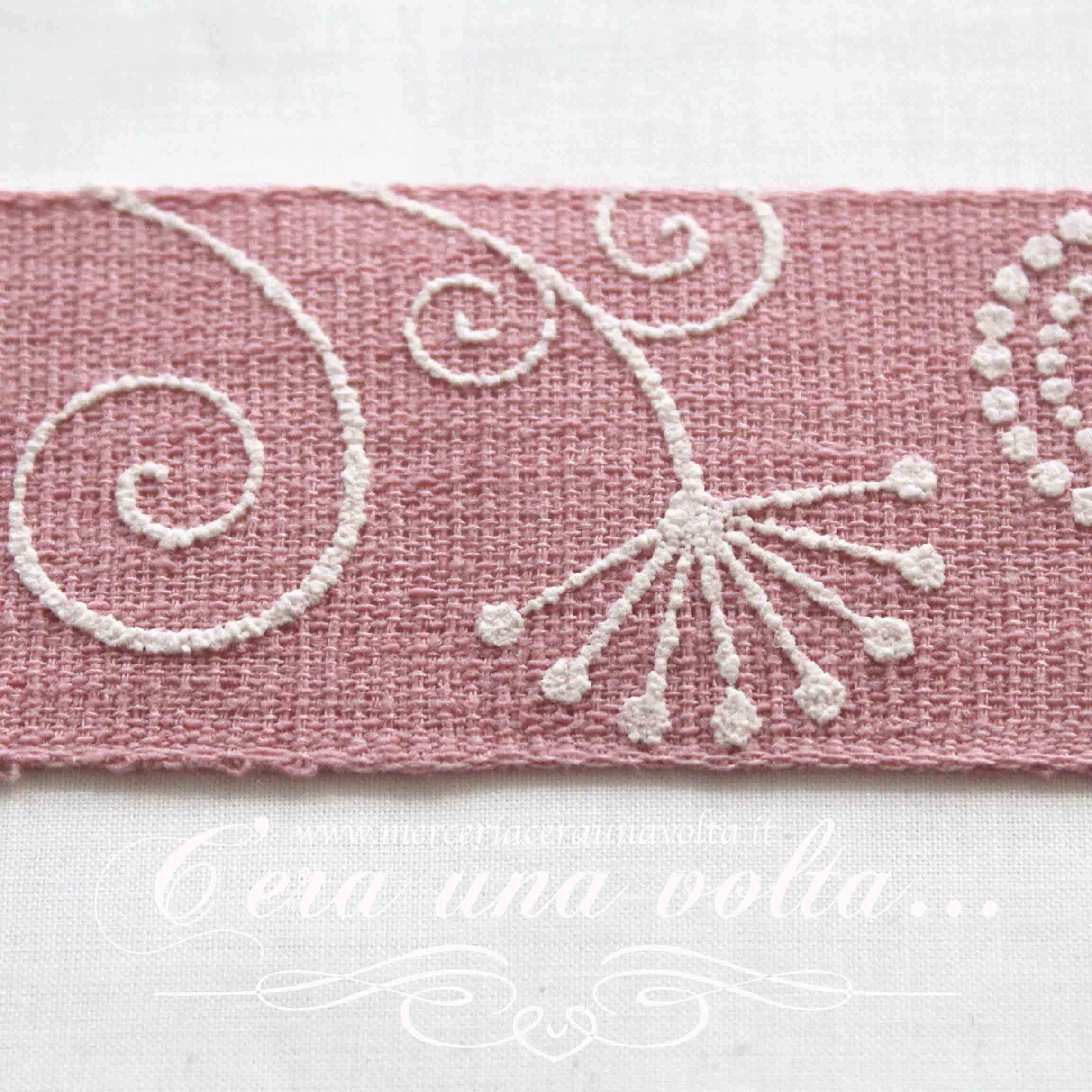 Il protagonista assoluto di questo bordo, è un raffinato ramage Bianco, che si posa sinuoso su una base Greggia naturale,...