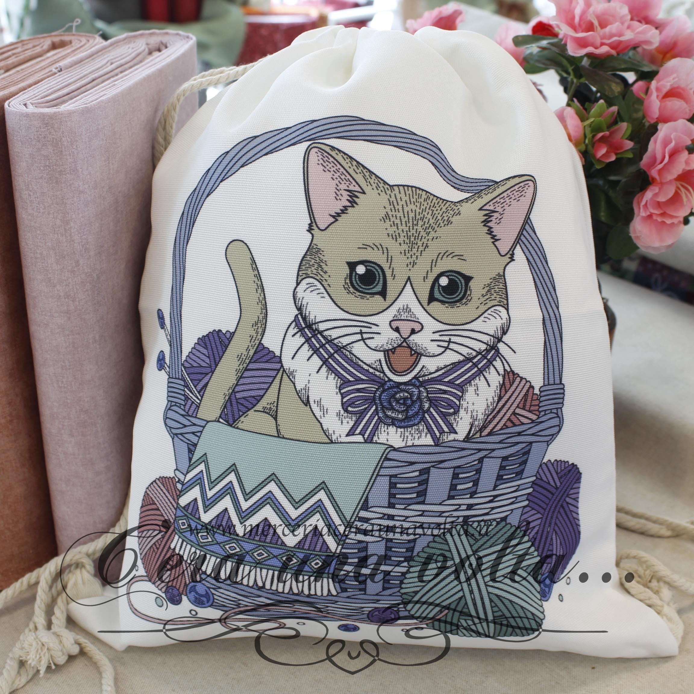 Borsa portalavoro per riporre e conservare i tuoi lavori a maglia o all'uncinetto, con pratica coulisse a spalla per poterla trasportare