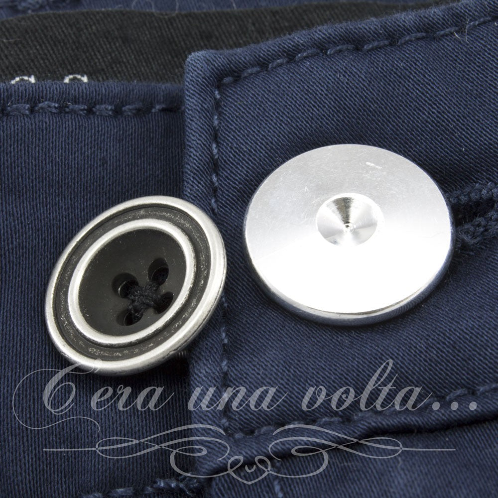 Bottone allarga pantaloni. Con un semplice gesto e senza cuciture, si ottiene una taglia di girovita in più.
