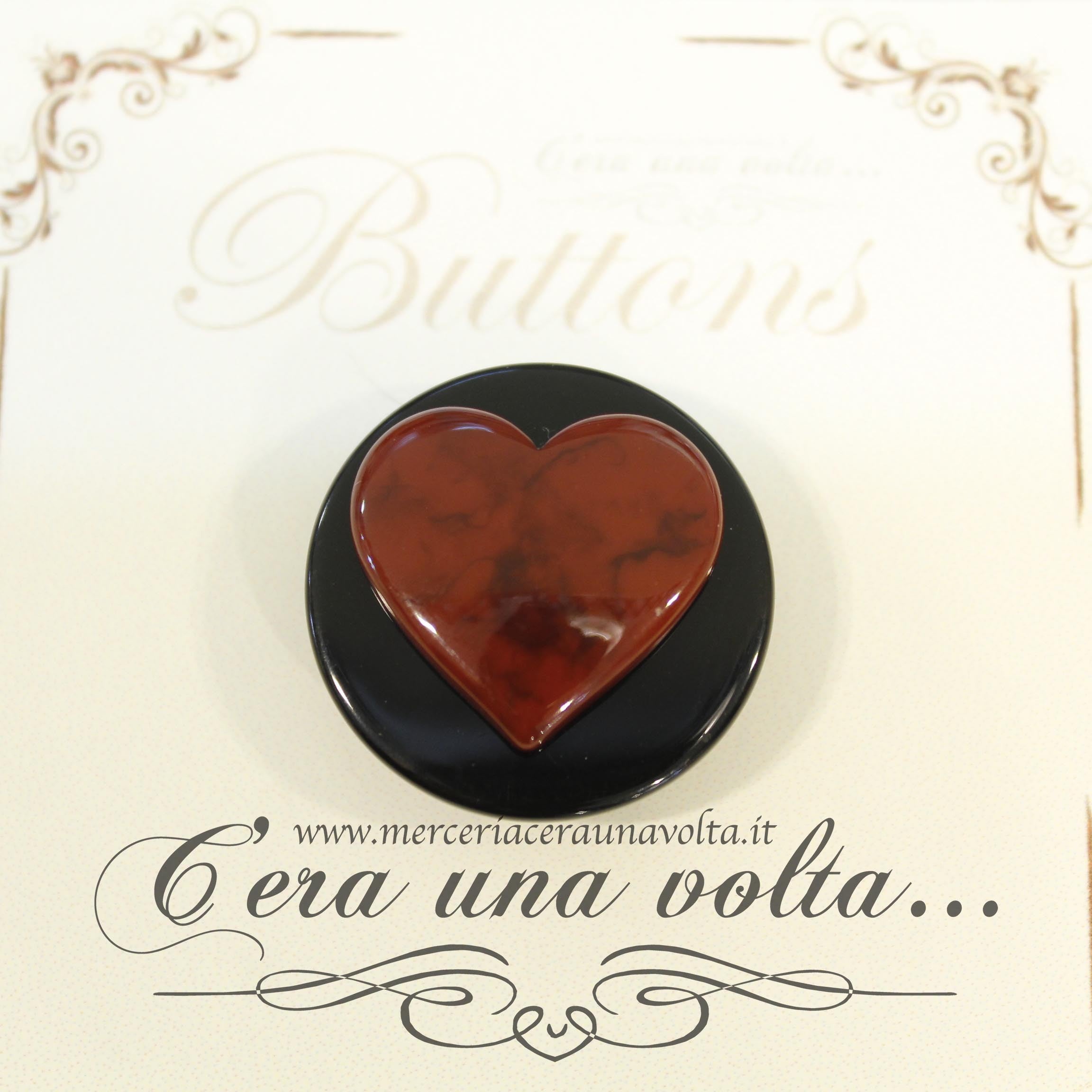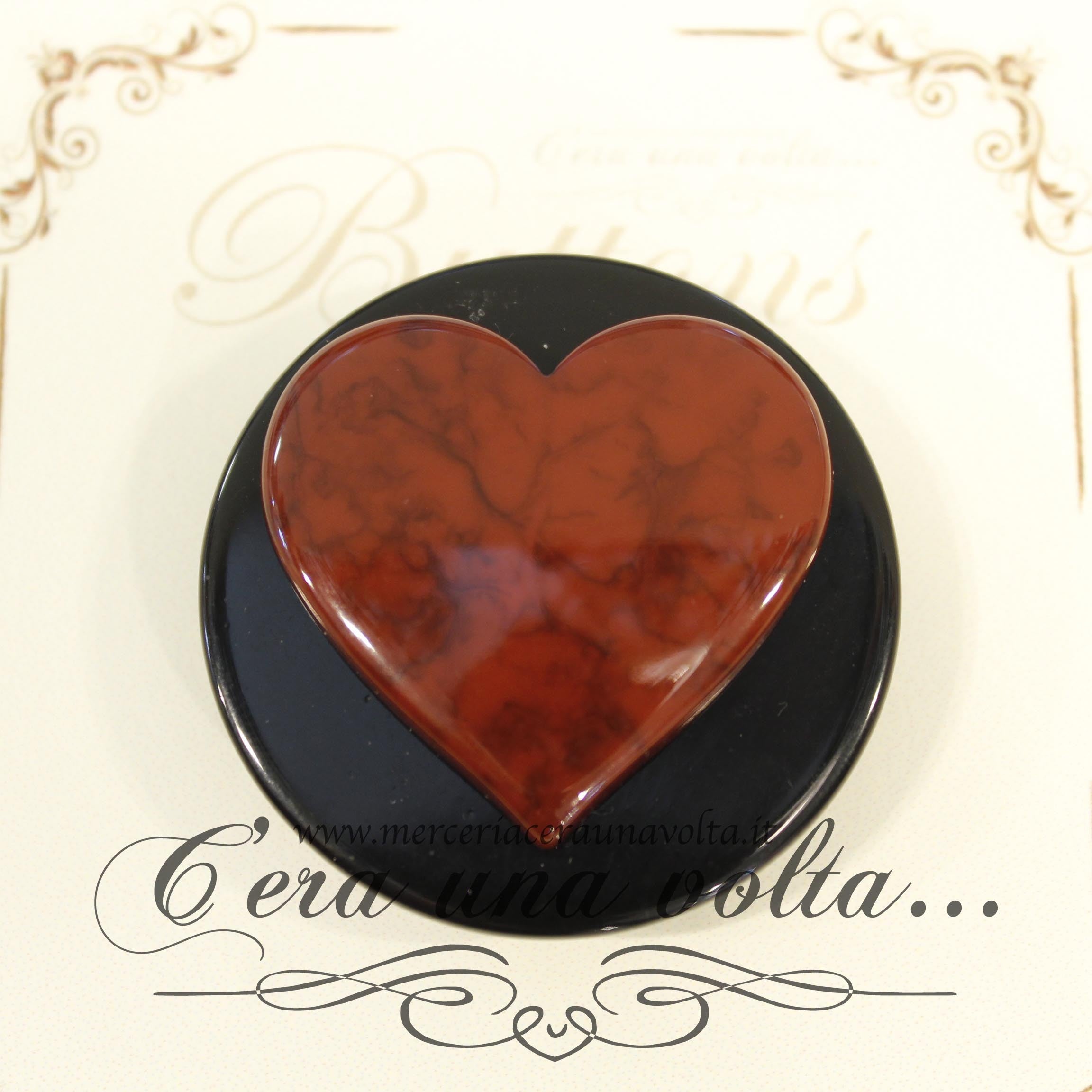 Bottone con gambo, composto da fondello di colore nero, e inserto a forma di cuore Rosso Geranio effetto marmorizzato. Disponibile...