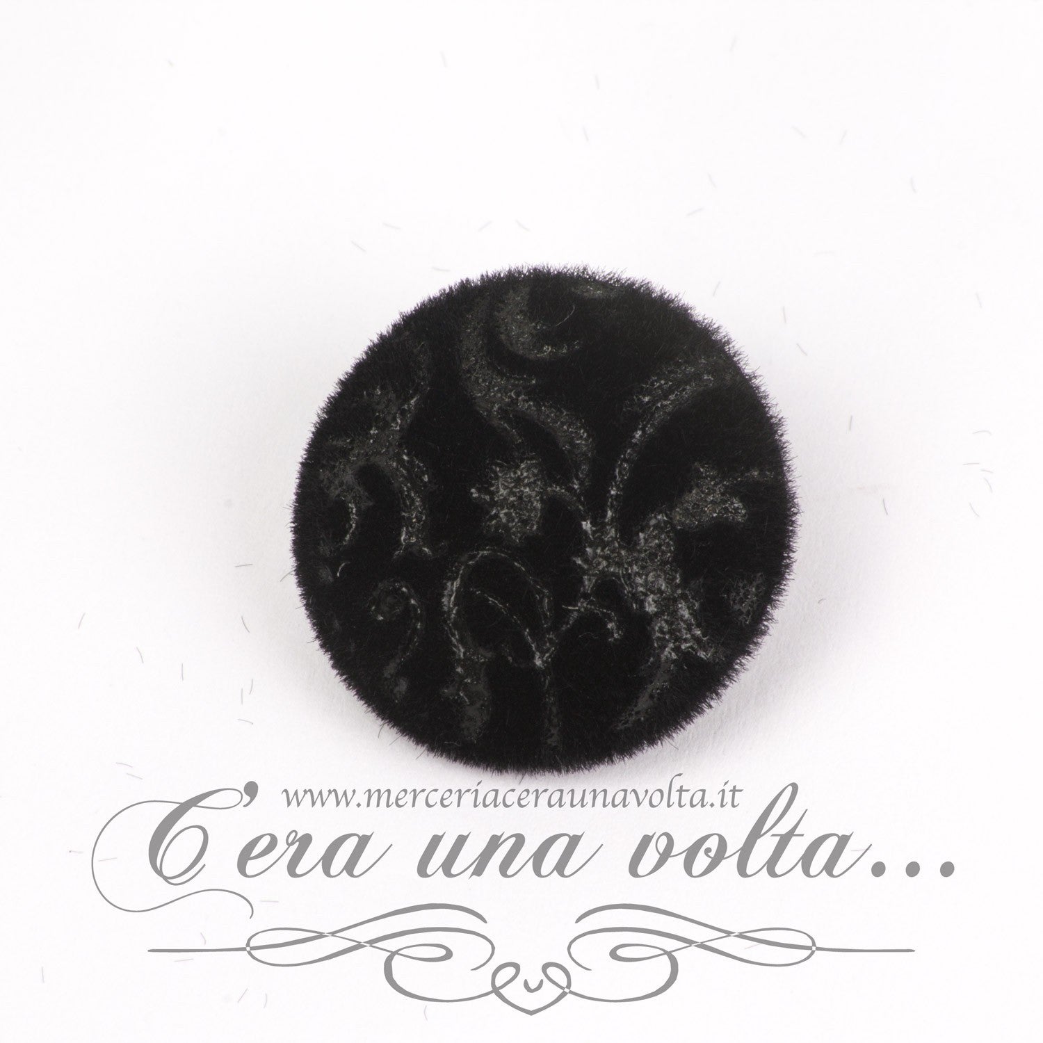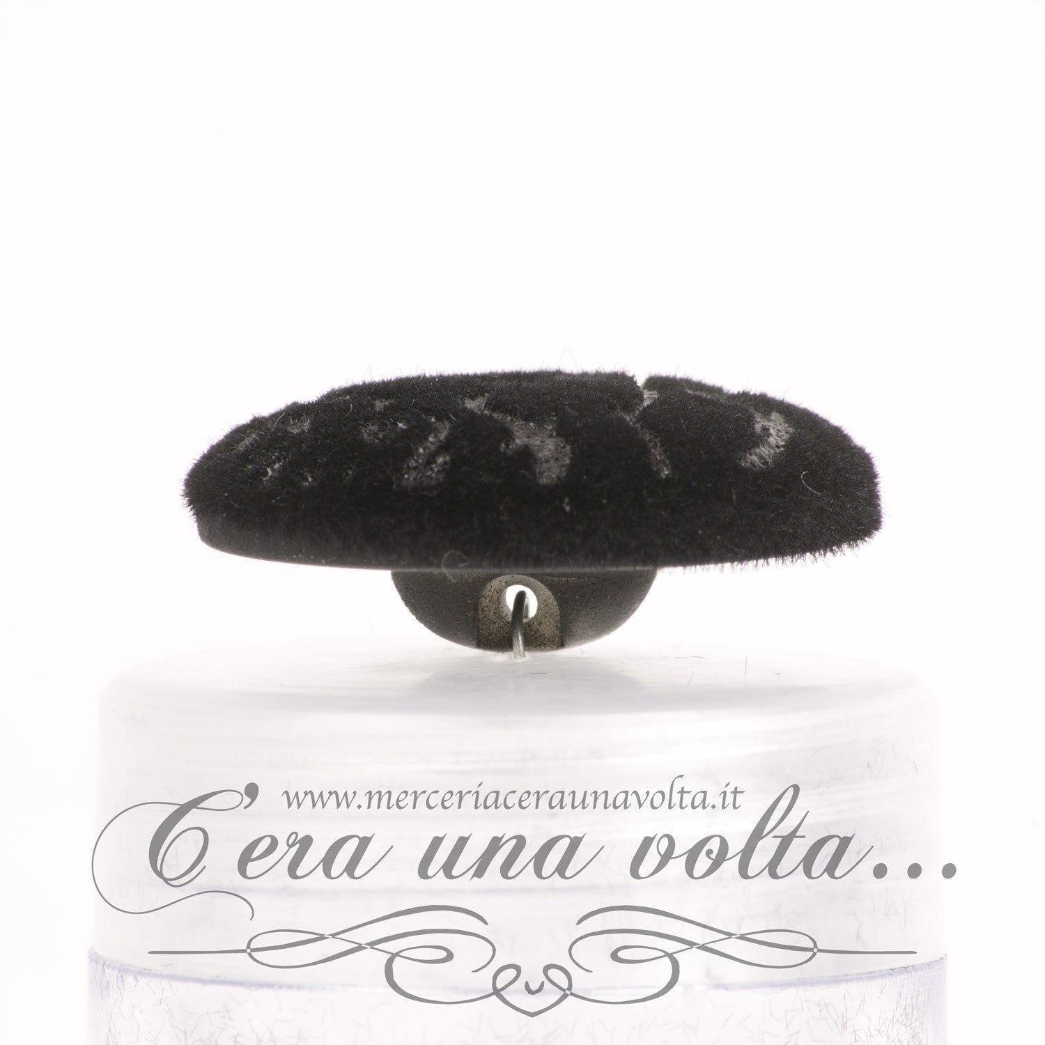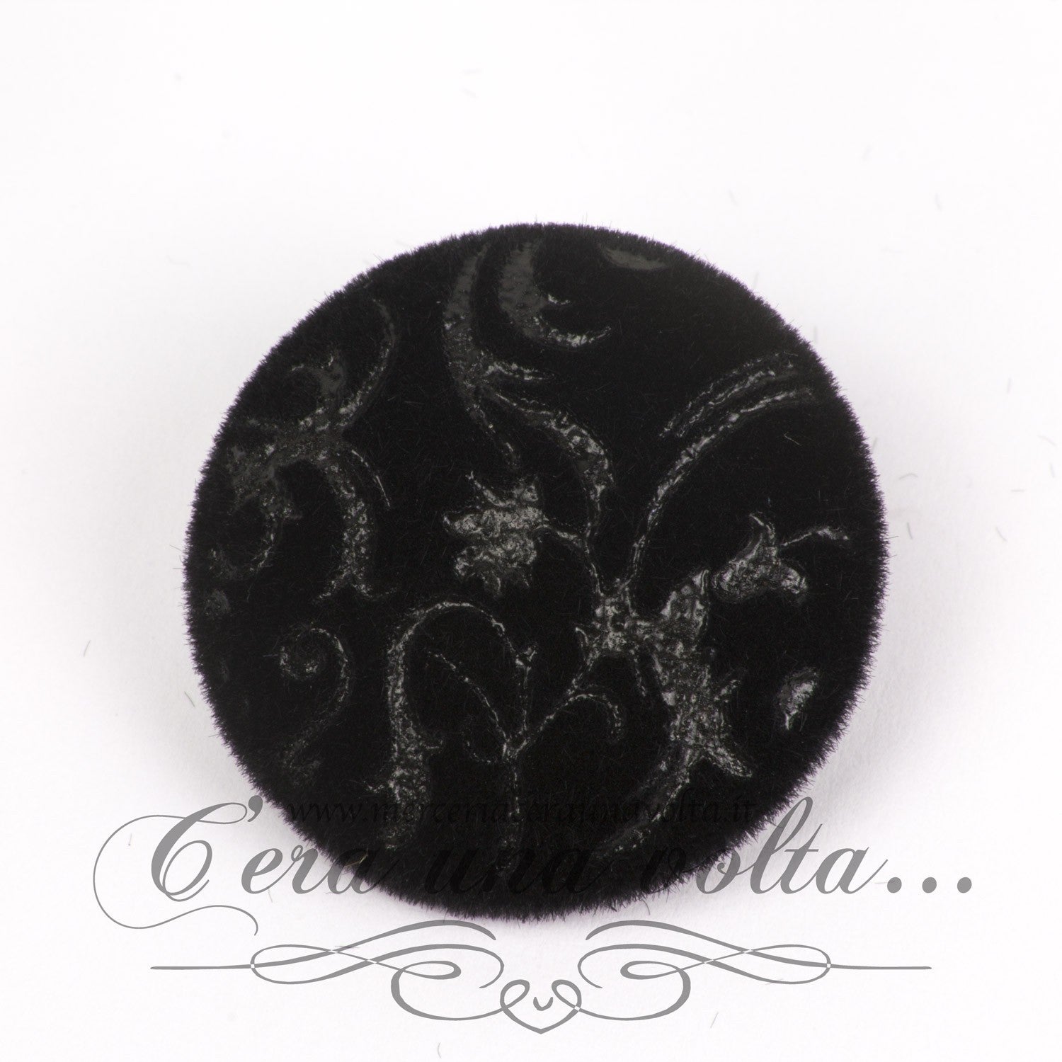 Bottone ricoperto con velluto serigrafato, elegantissimo.