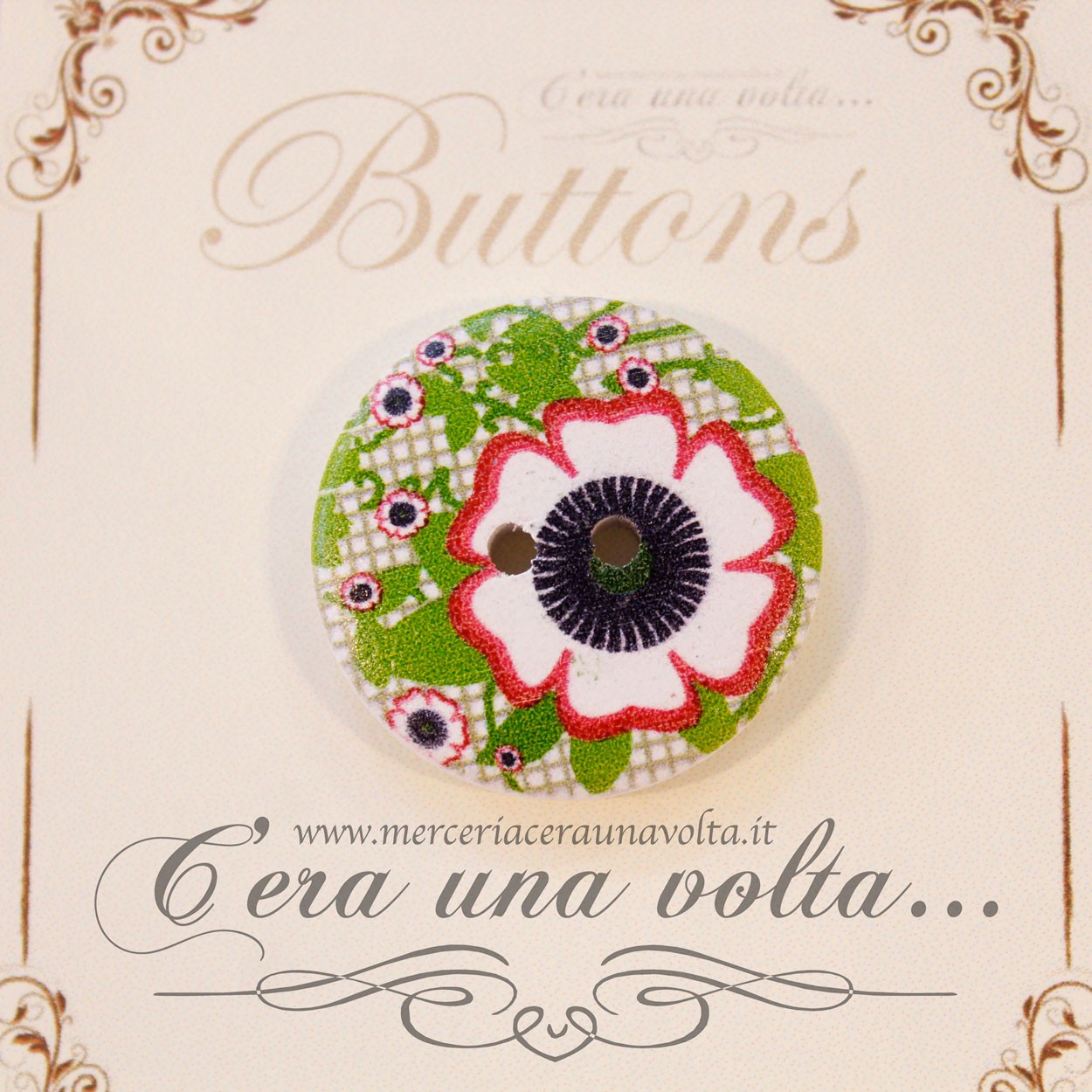 Bottone in legno 2 fori, ideale per decorare e rifinire capi di abbigliamento, per aggiungere un tocco personale alle vostre creazioni. Trova largo uso nell'hobbistica creativa.