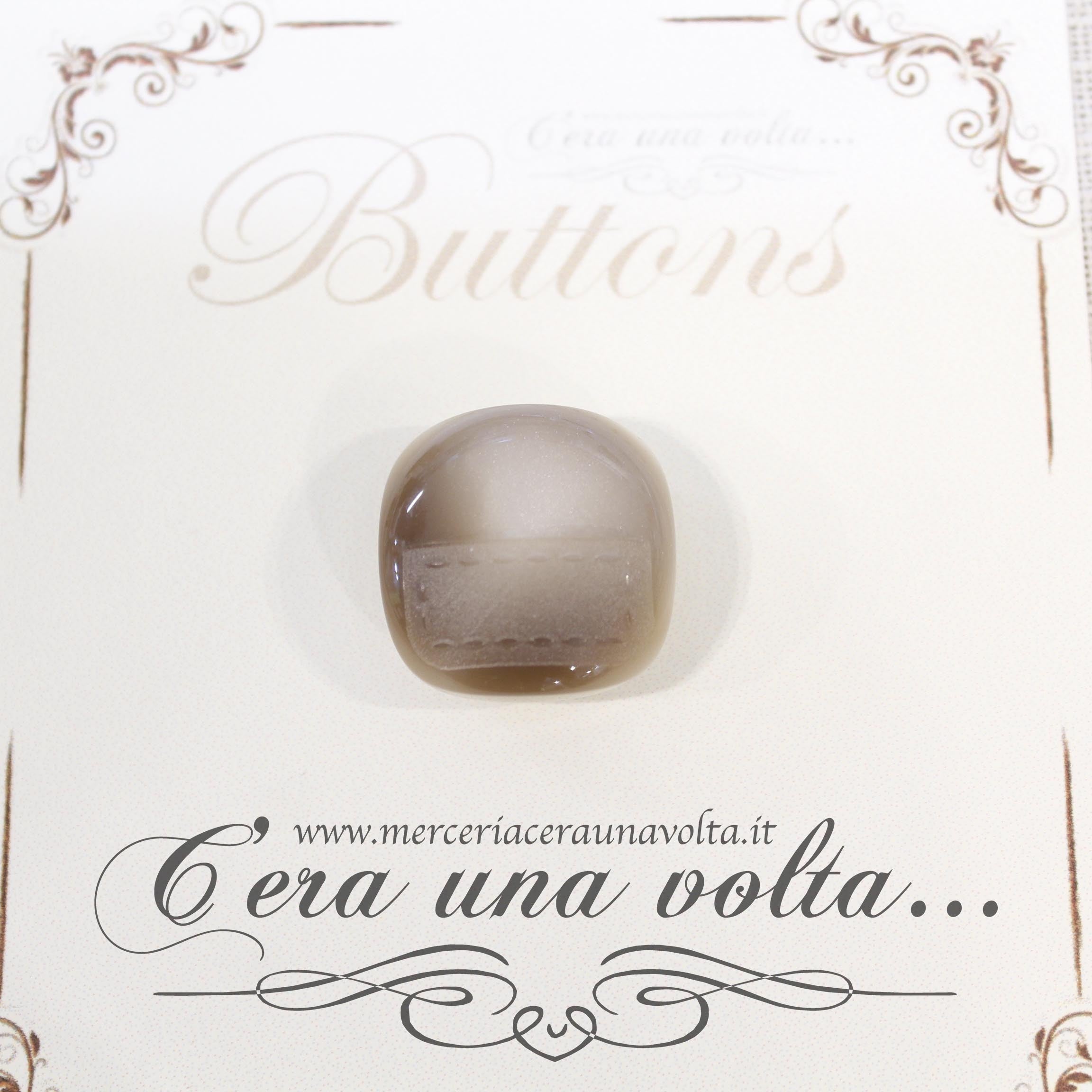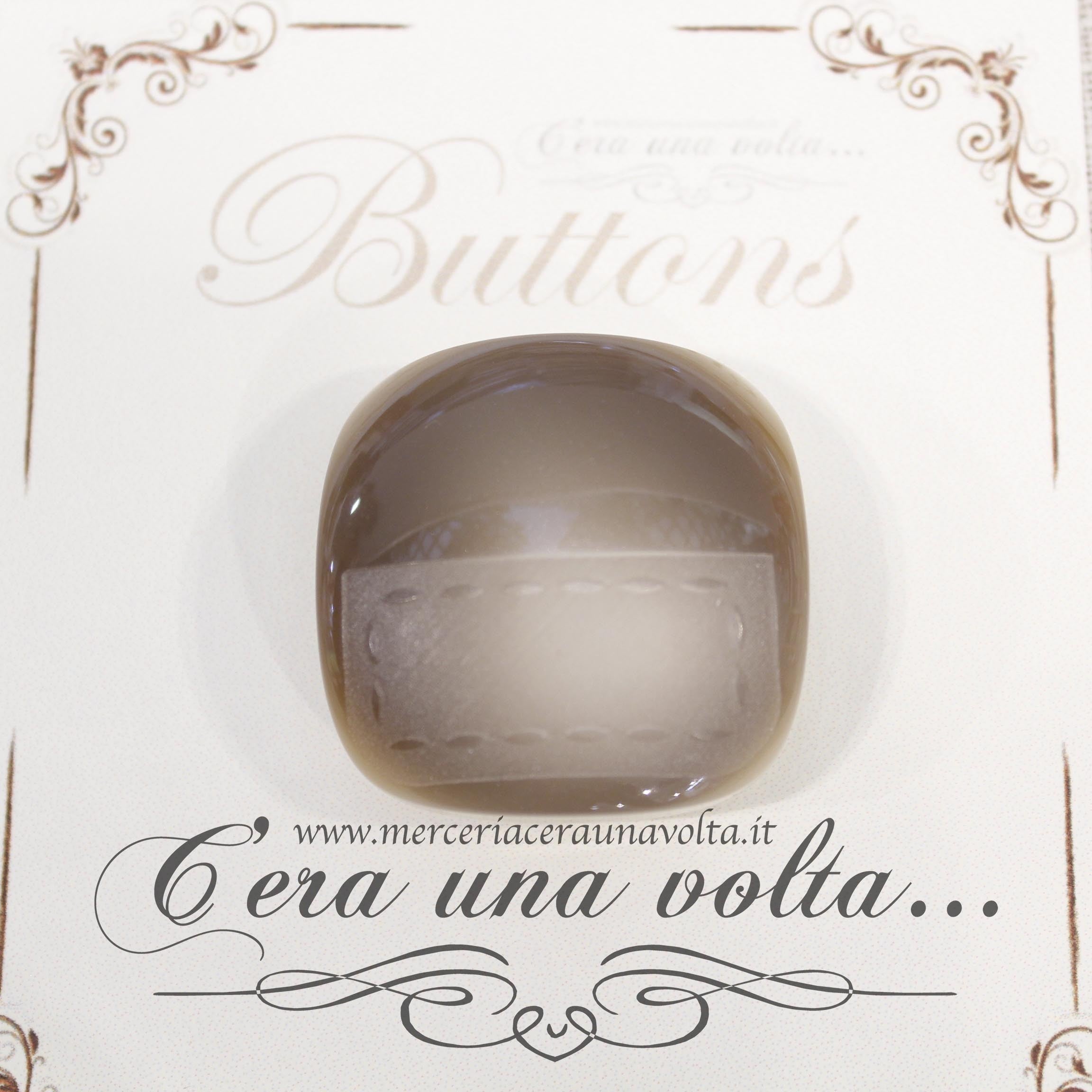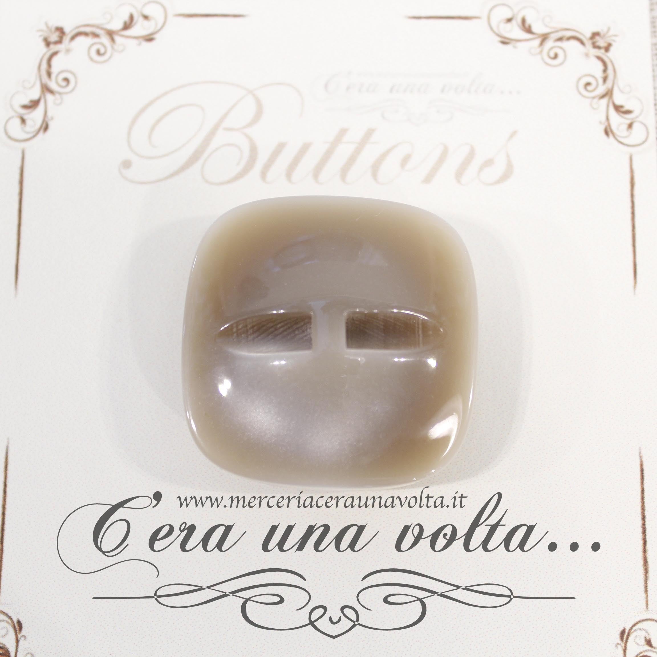 Caratteristico bottone per cappotto, a forma quadrata, attraversato da un'elegante e discreta pirografia sartoriale a rilievo che ne dona un'effetto...