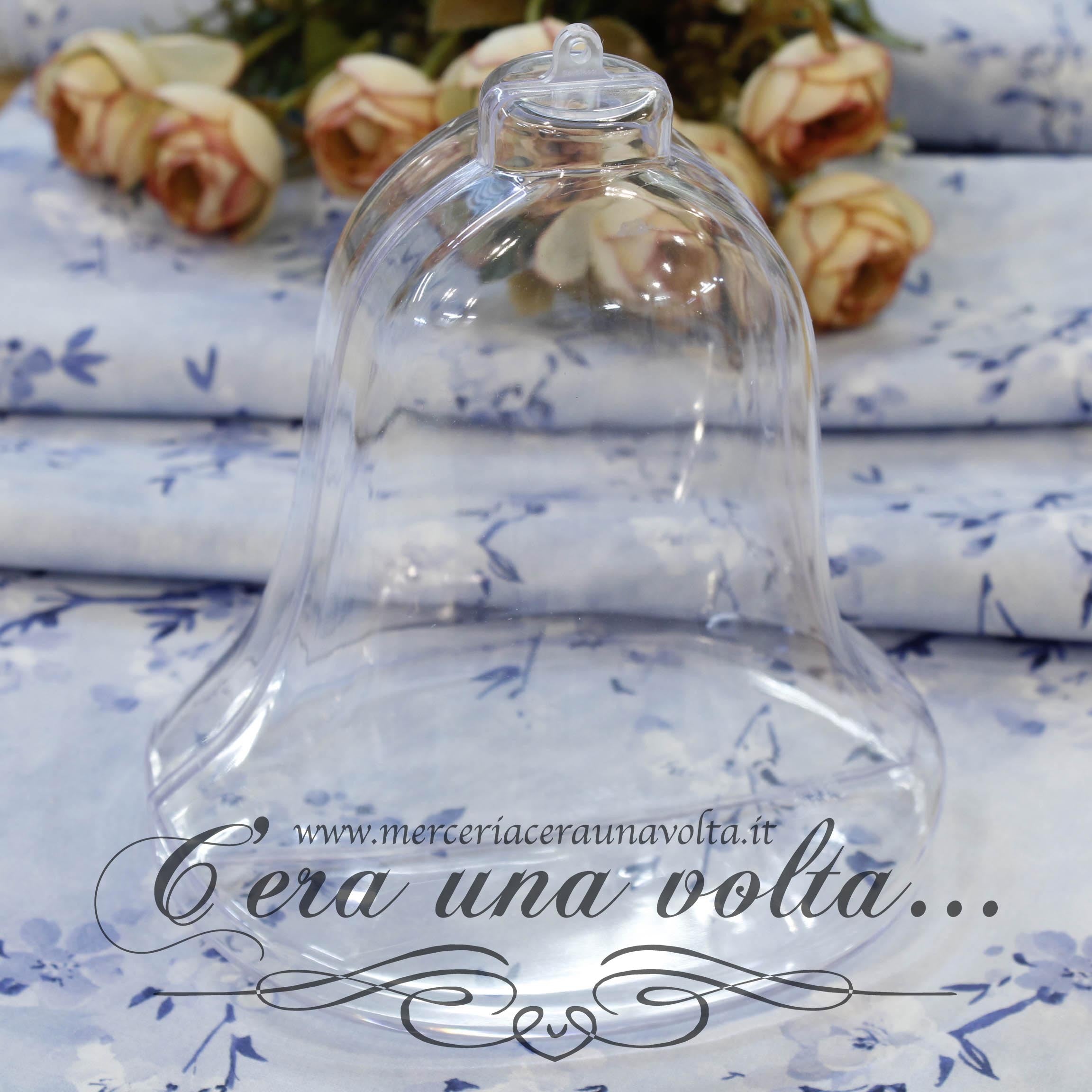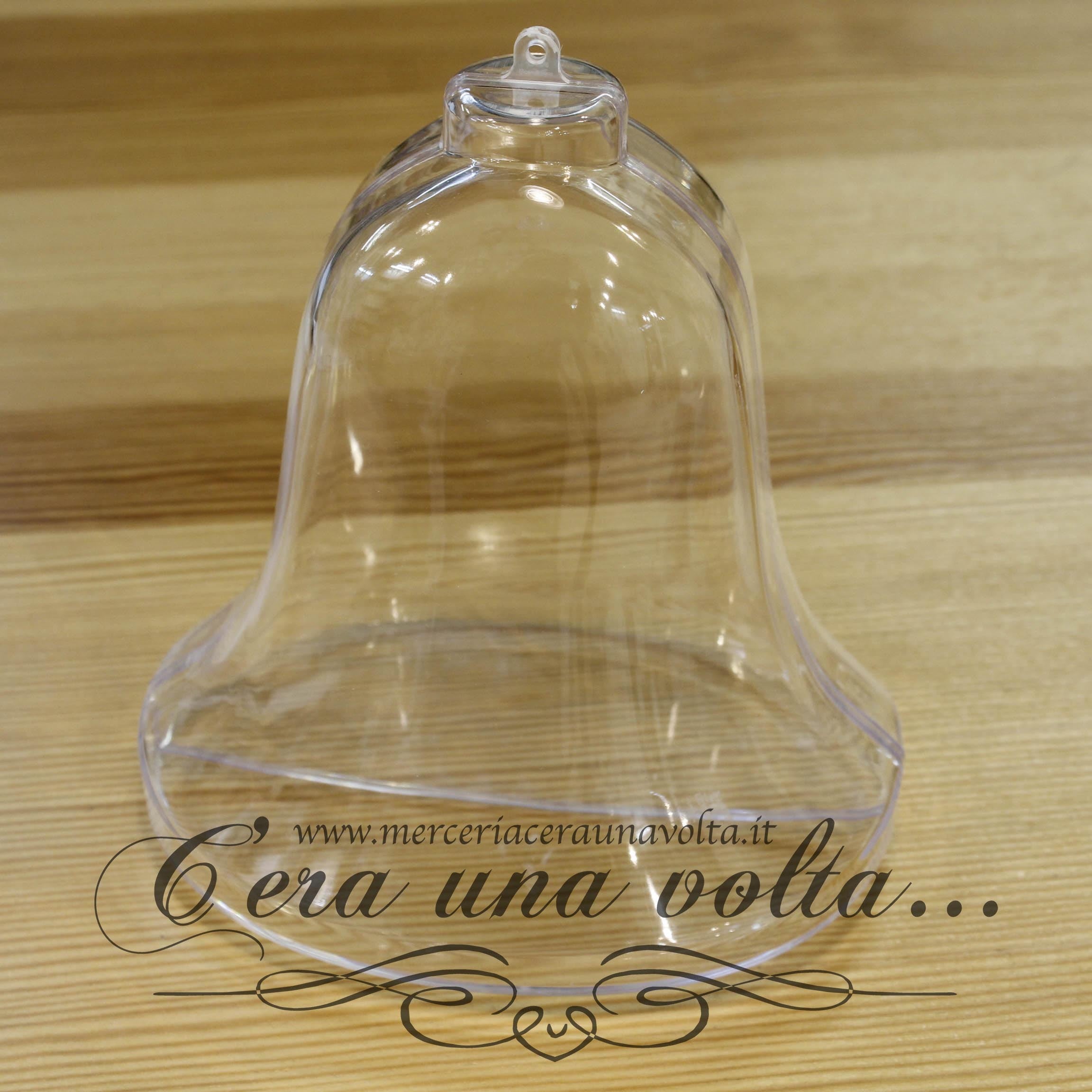 Campana in plastica trasparente, apribile ad incastro, con comodo anellino per appenderla, ideale per dècoupage, come contenitore per potpourri, dipinta o decorata con varie tecniche