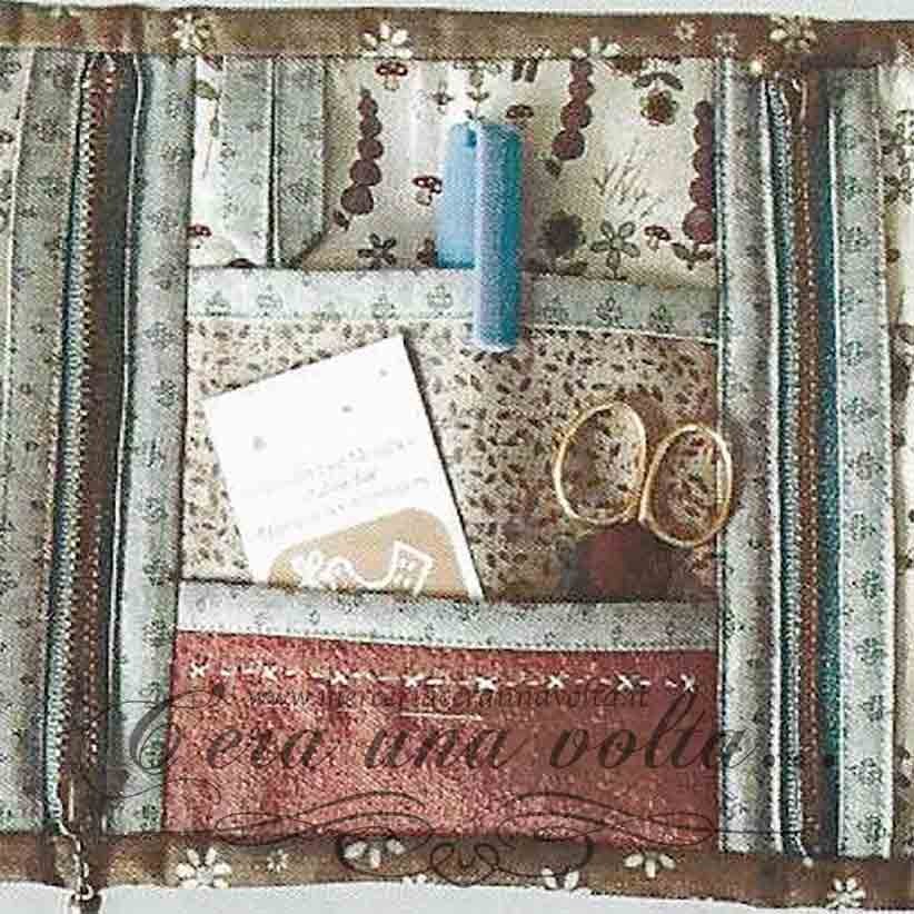 Cartamodello con spiegazioni passo passo per tagliare e assemblare questo mini organizer ripiegabile per il cucito, ideato da Lynette Anderson