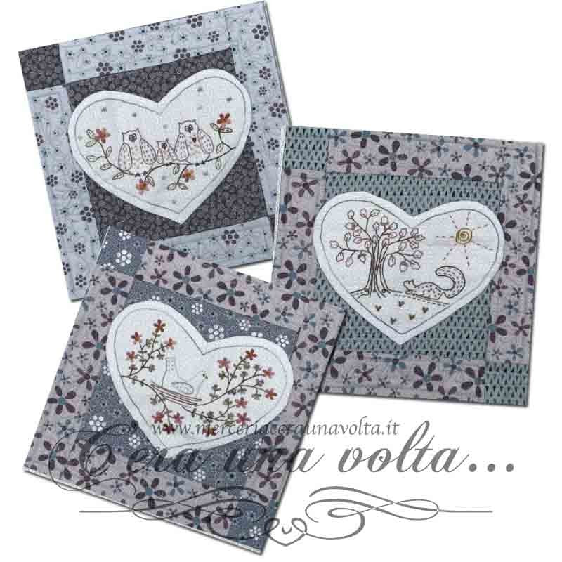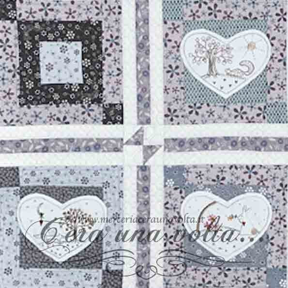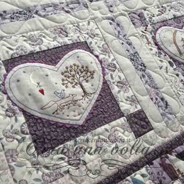 Cartamodello con spiegazioni passo passo per tagliare e assemblare questa bellissima trapunta, con 7 ricami in misura reale, ideato da Lynette...