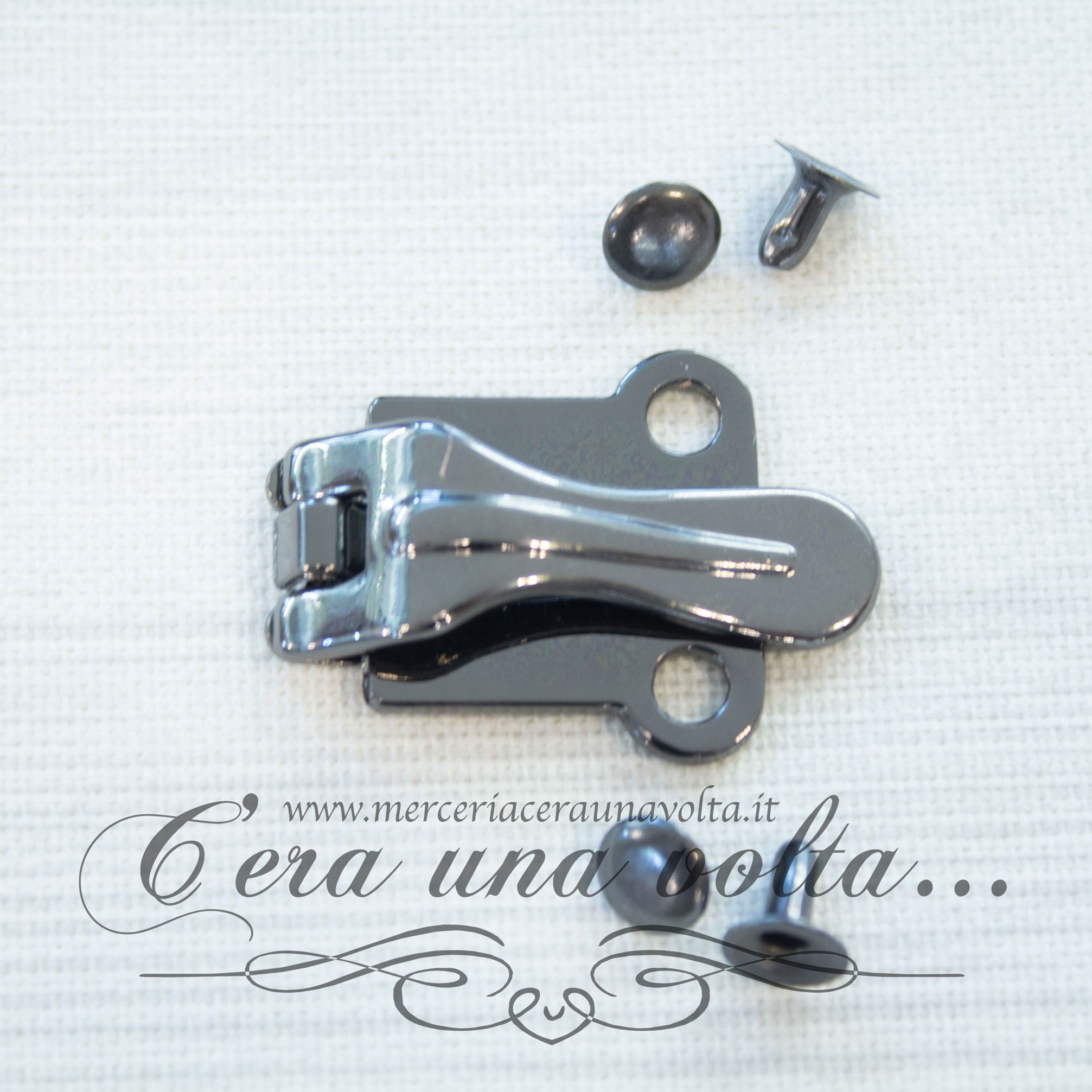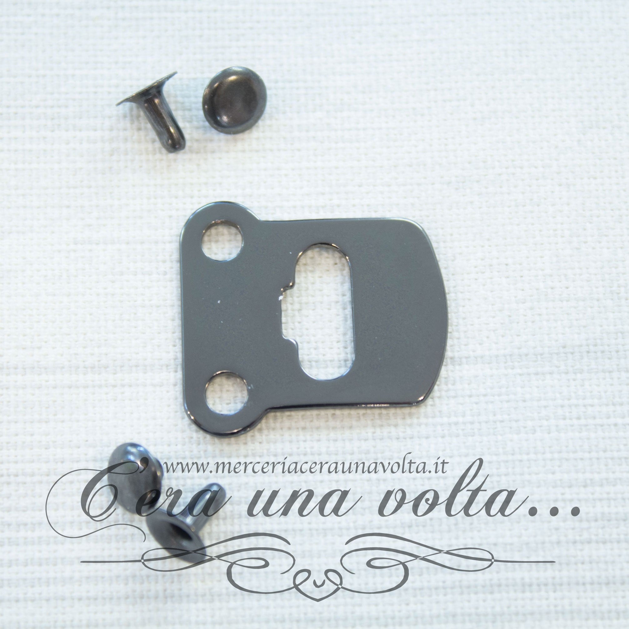 Chiusura con rivetti, composta da 10 elementi con foro di posizione per essere inserita alla stoffa, bordi arrotondati, adatta per...