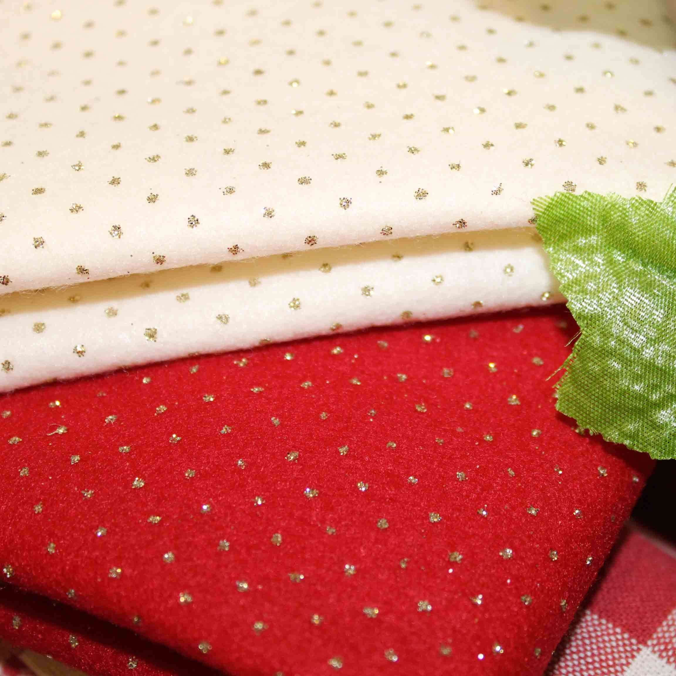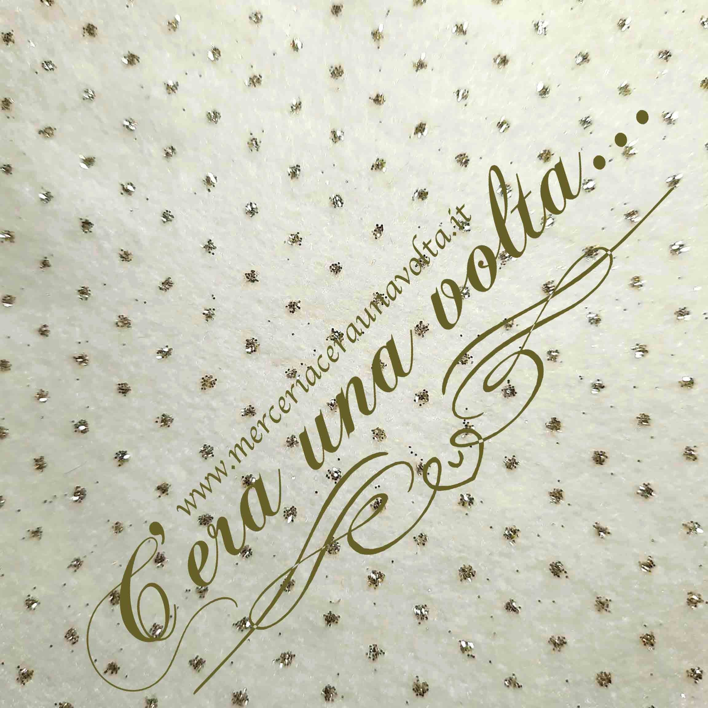 Pannolenci Glitter a pois adatto per lavori di hobbistica, decorazioni, pupazzi, vestitini, patchwork, gioielli, cucito creativo. Disponibile in 2 varianti di colore con stampa a pois Oro