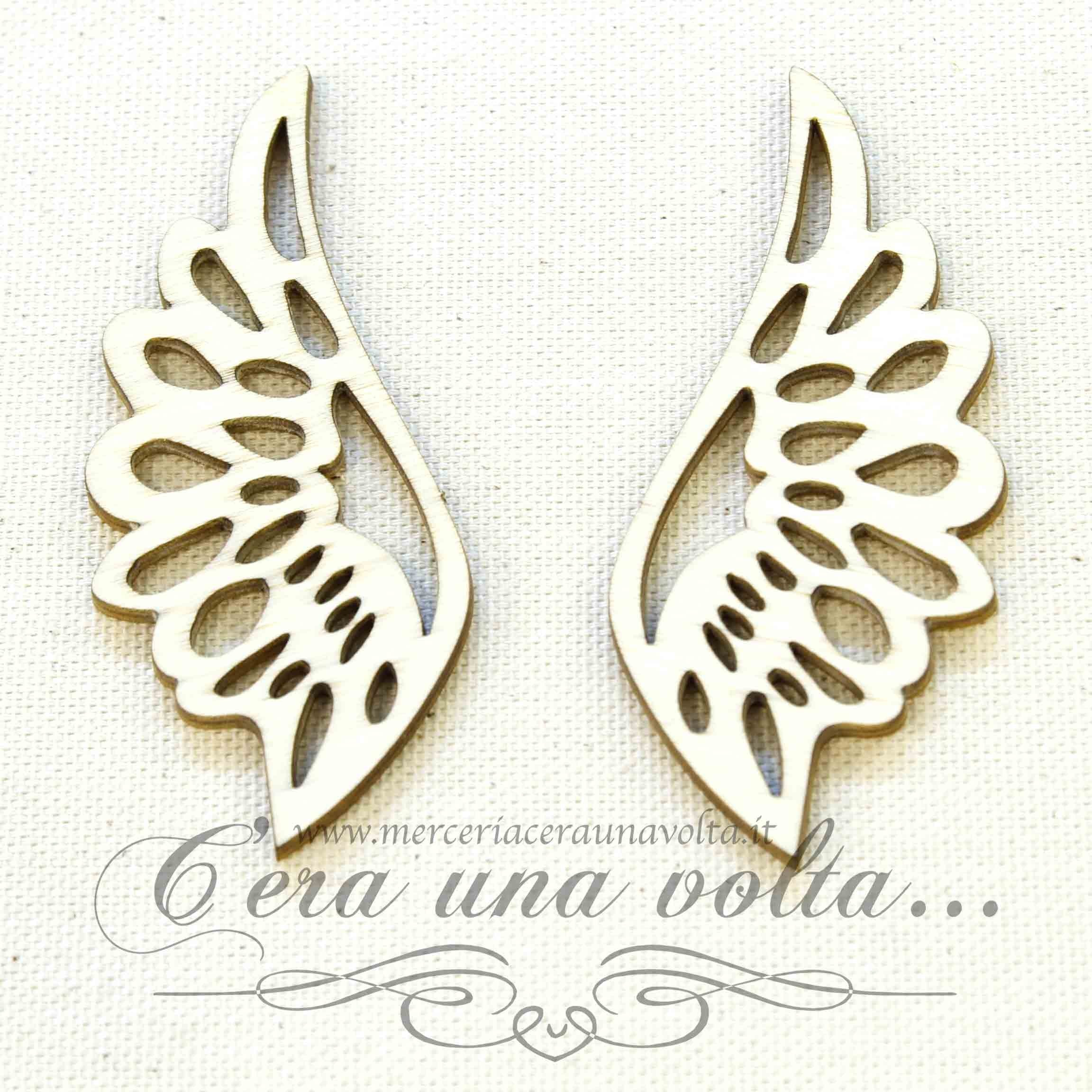 Coppia ali serigrafate in legno, per la realizzazione di angeli, bambole e fate