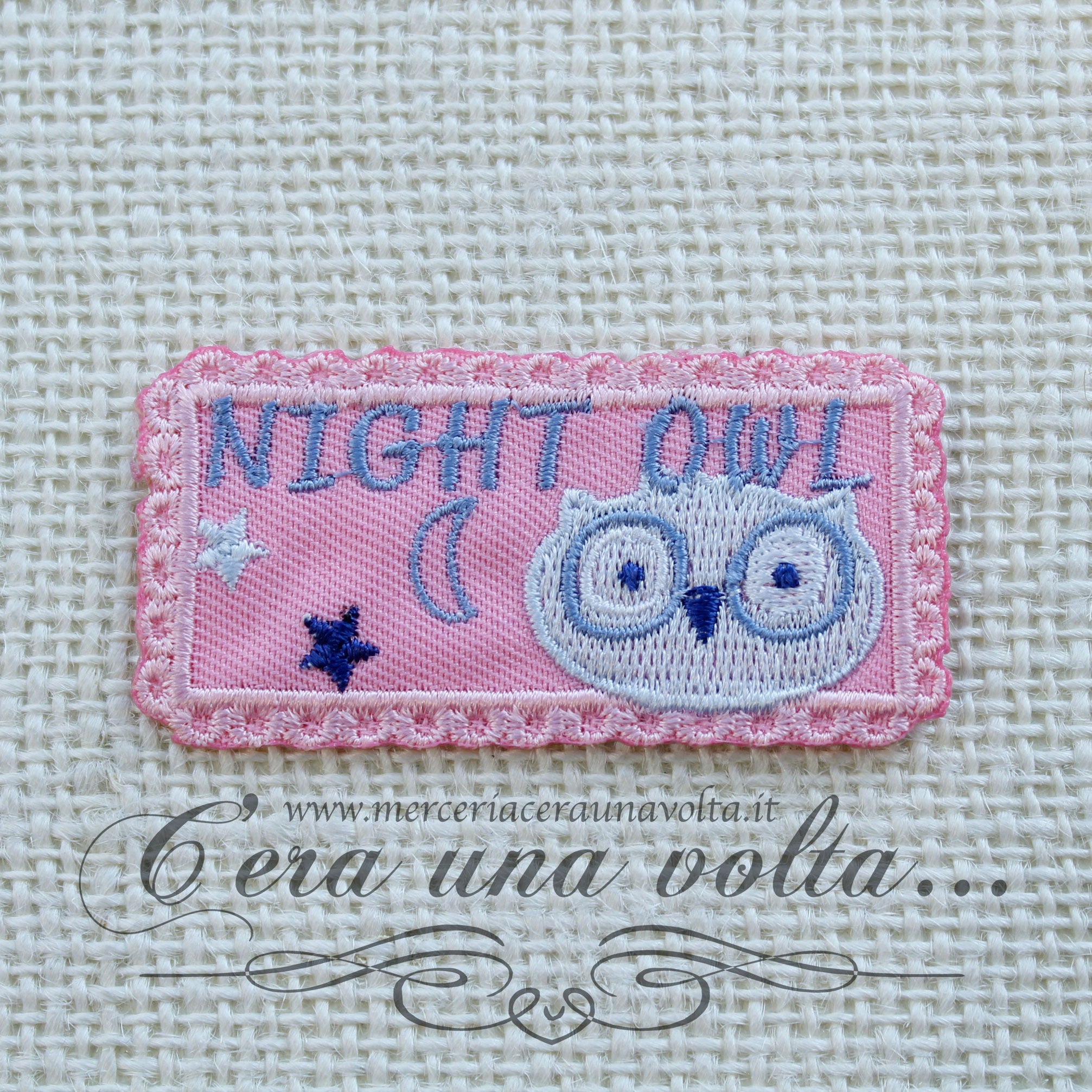 Etichetta per buchi termo adesiva rettangolare ricamata Owl