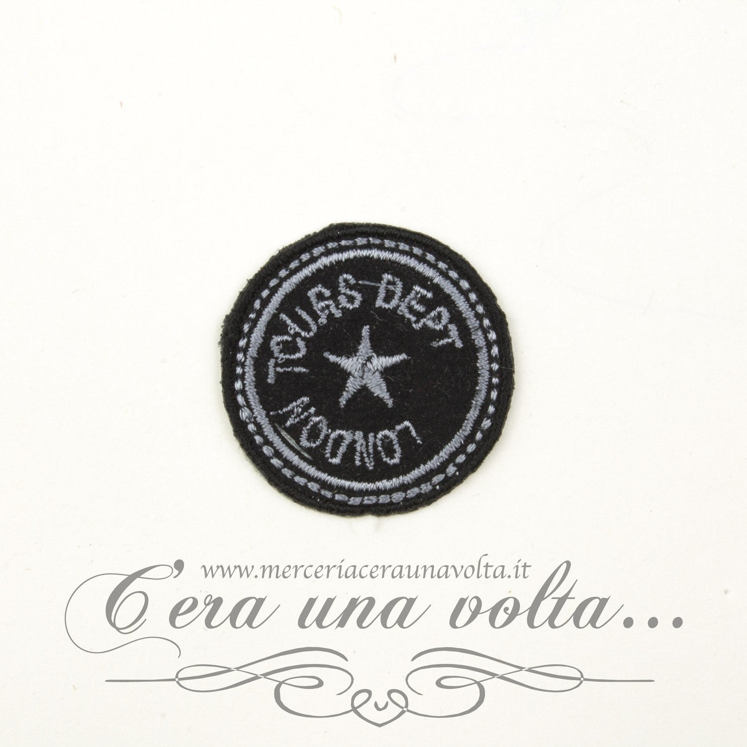 Etichetta termo adesiva rotonda LondonDisponibile in 2 variantiColori: Blu di Prussia Nero Diametro: 3 cmForma: circolareStampa: London Tours DeptComposizione: 100% PoliestereUtilizzo:1....