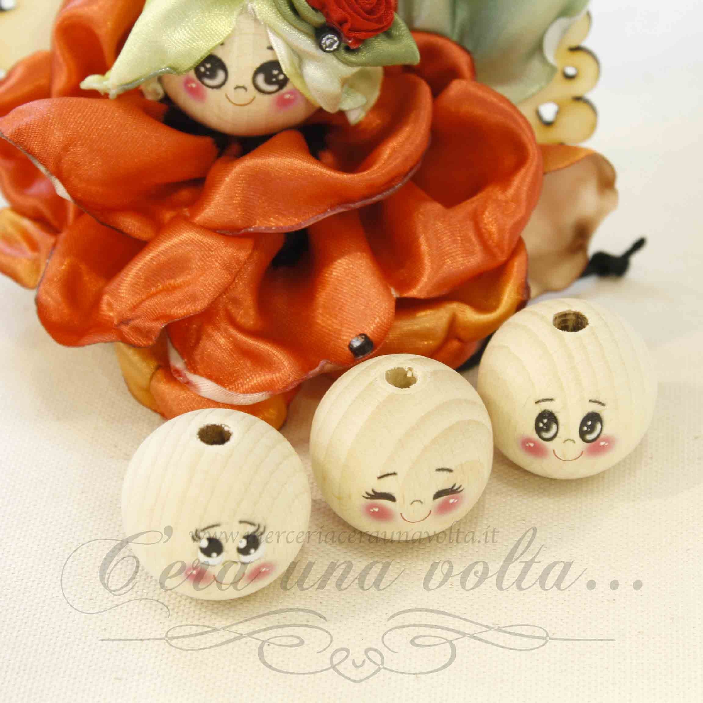Faccine in legno naturale con foro passante già dipinte, ottima finitura, ideali per decorazioni, modellismo, fai da te, bambole e pupazzi. Disponibili in 5 varianti