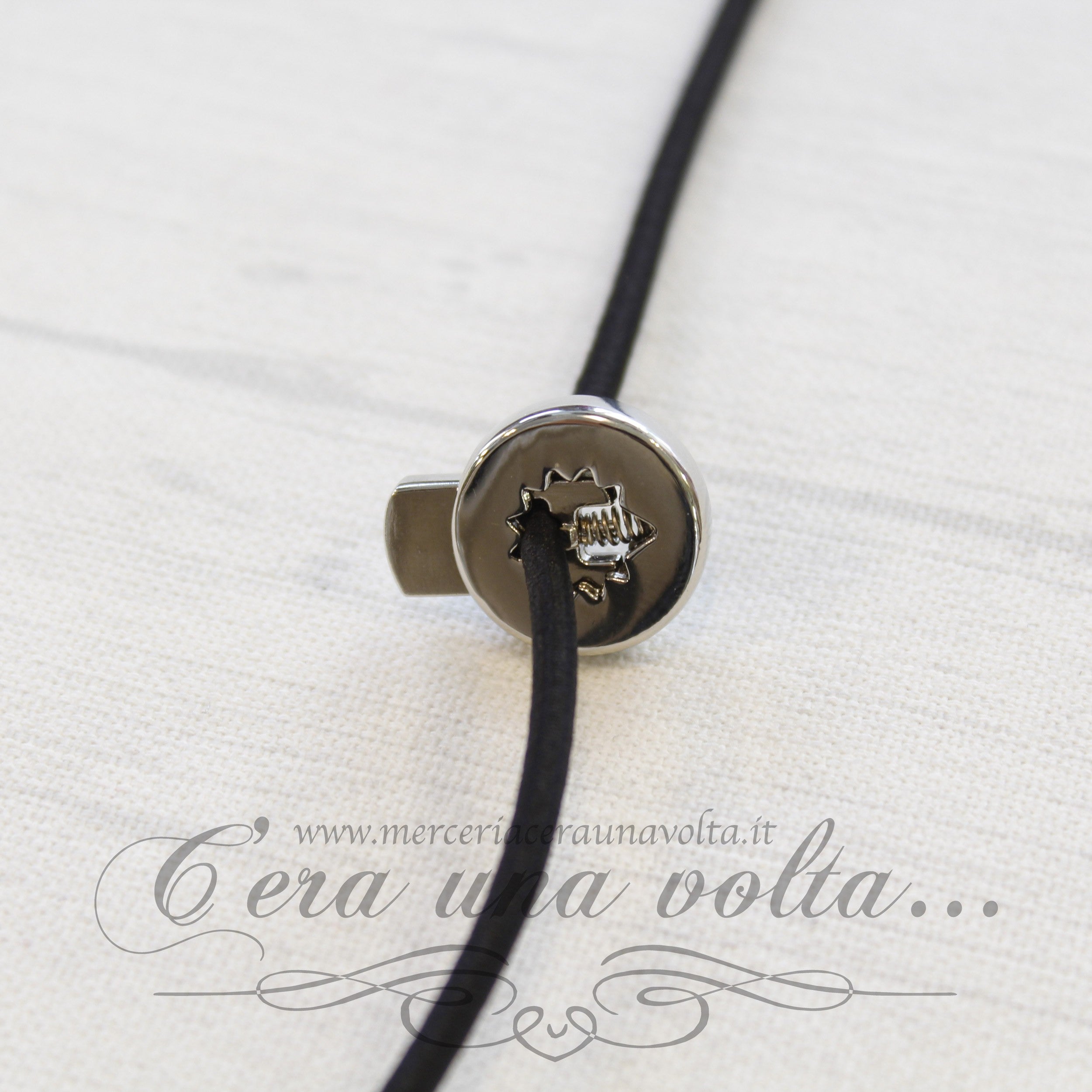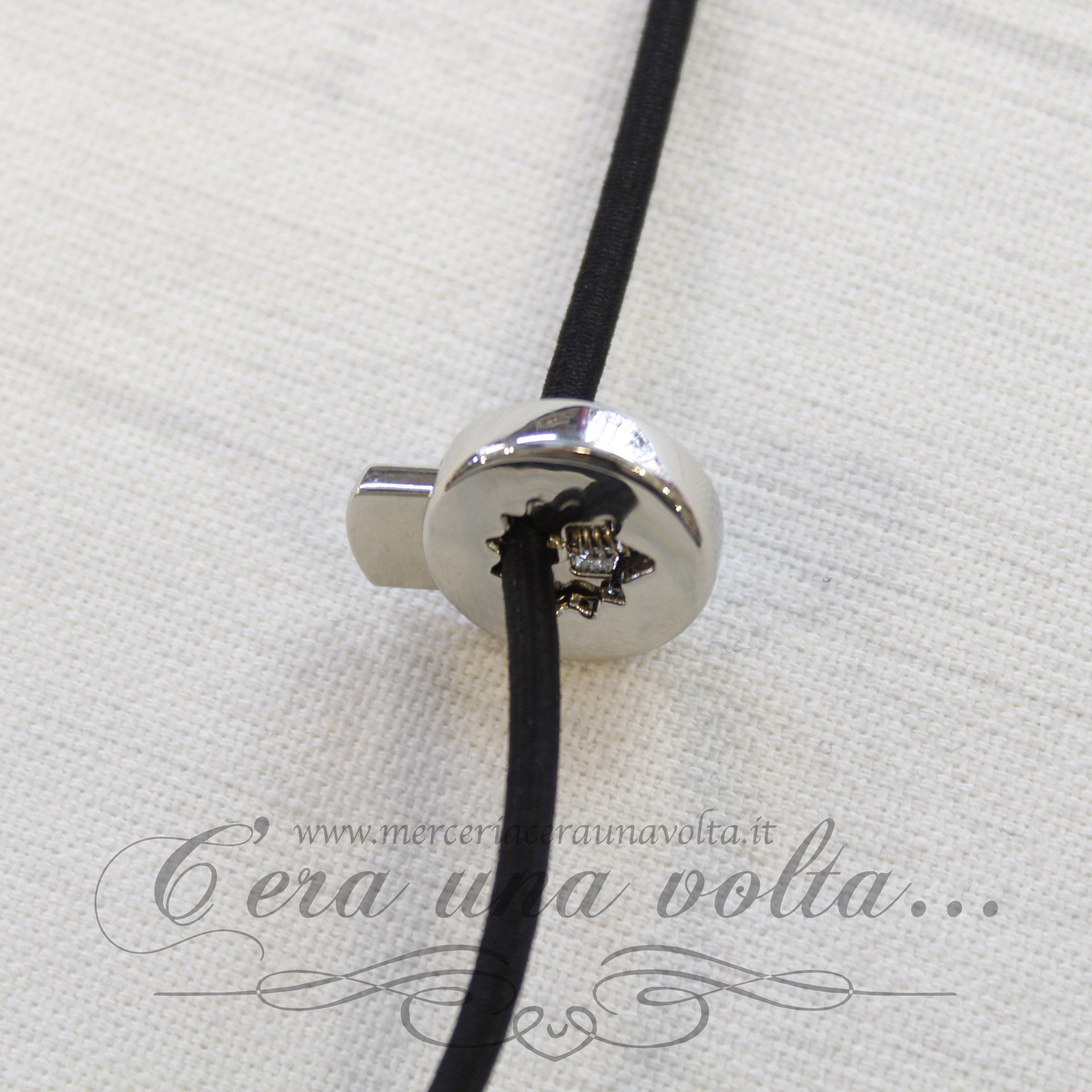 Ferma coulisse 1 foro con meccanismo a molla per la regolazione dei cordoncini o elastici presenti nei capi d'abbigliamento o negli accessori.