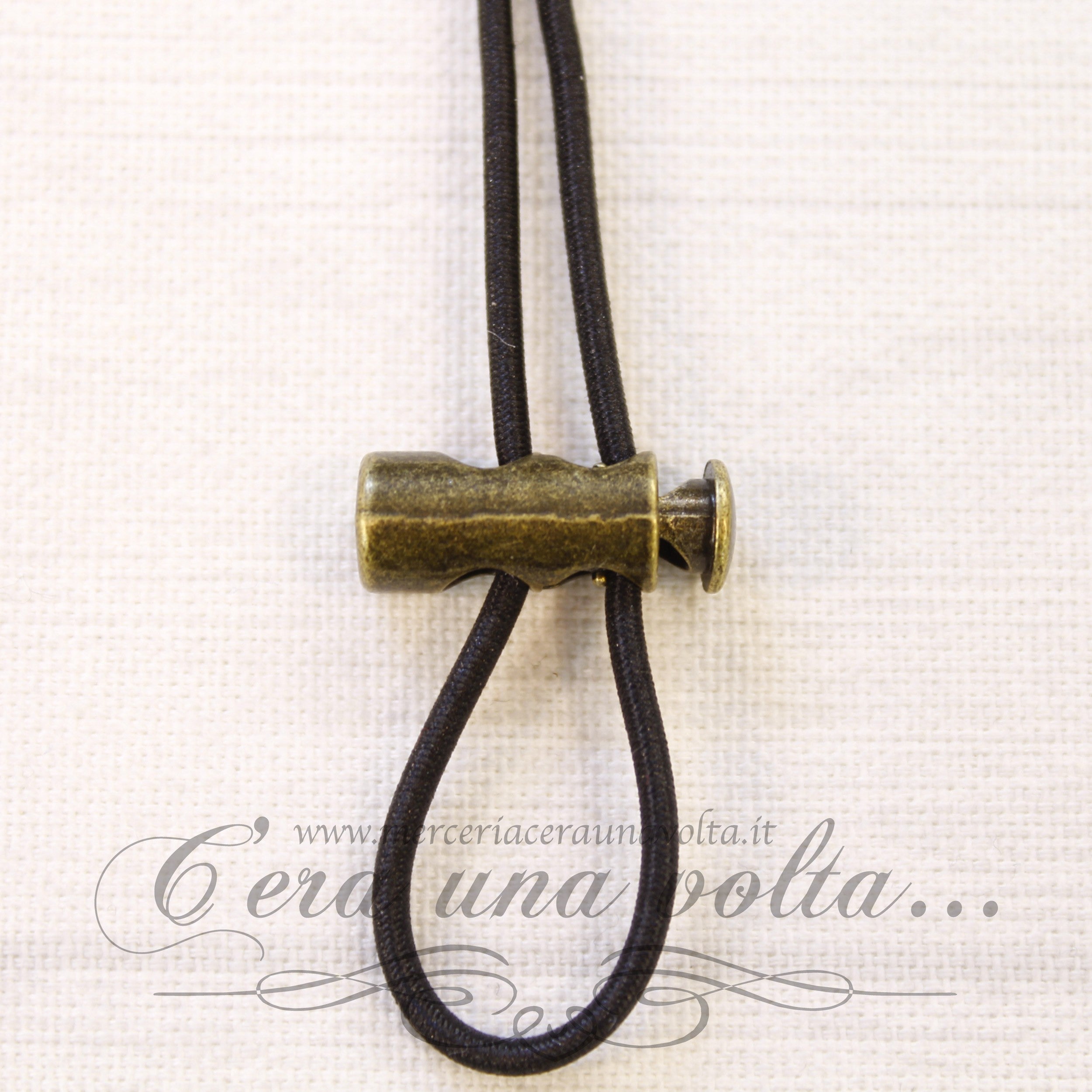 Fermacorda 2 fori con meccanismo a molla per la regolazione dei cordoncini o elastici presenti nei capi d'abbigliamento o negli accessori.
