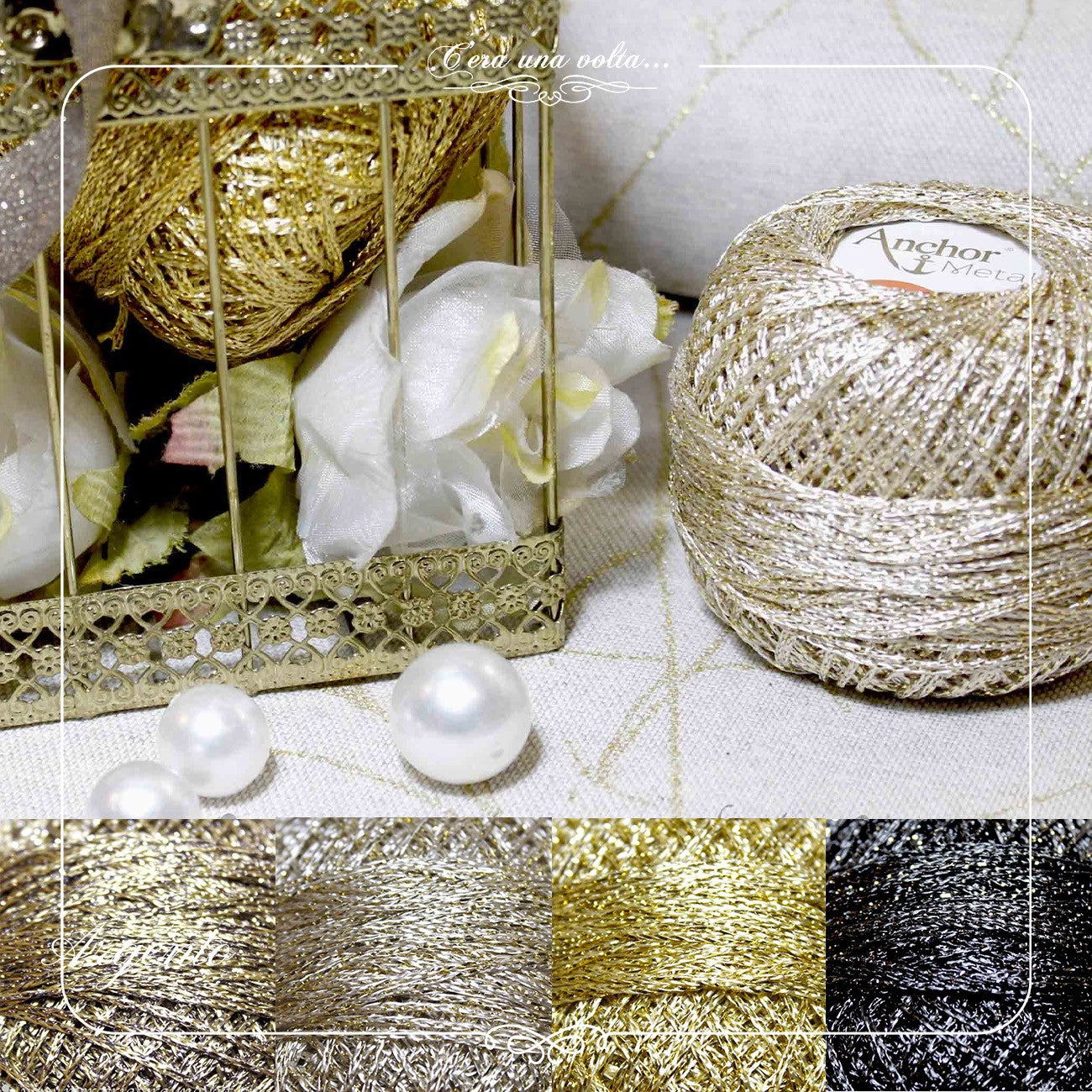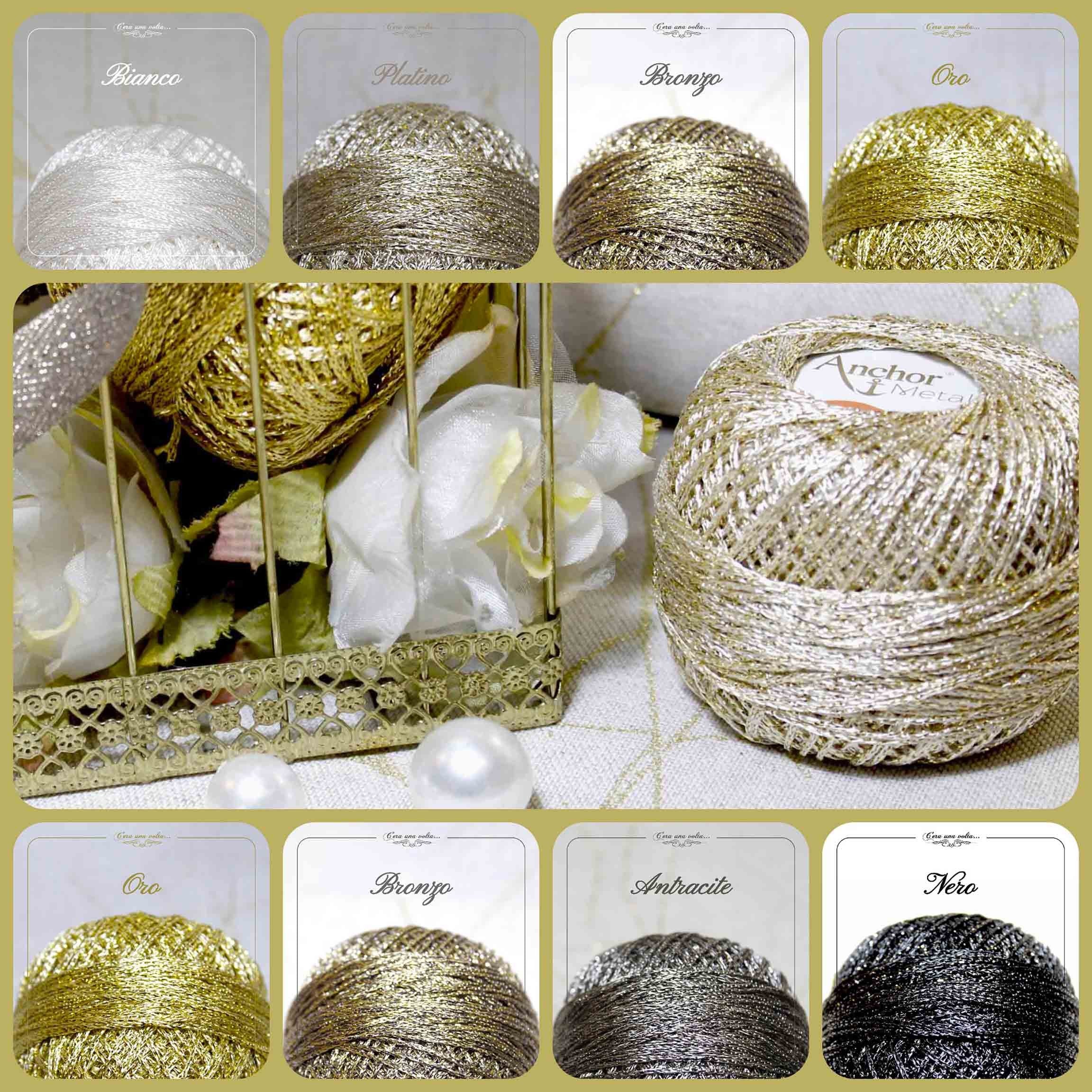 Filato in viscosa avvolto da un lurex luminoso e scintillante, da utilizzare da solo oppure abbinato ad altri filati per la lavorazione di capi di abbigliamento, ma perfetto anche per la realizzazione di oggettistica e accessori di pregio. disponibile in 6 varianti di colore
