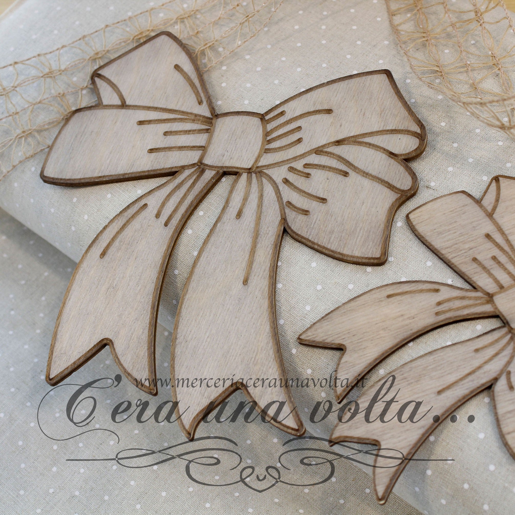 Sagoma Fiocco in legno naturale, dal sapore vintage e dal gusto un pò retrò, perfetta per decorare i tuoi lavori,...