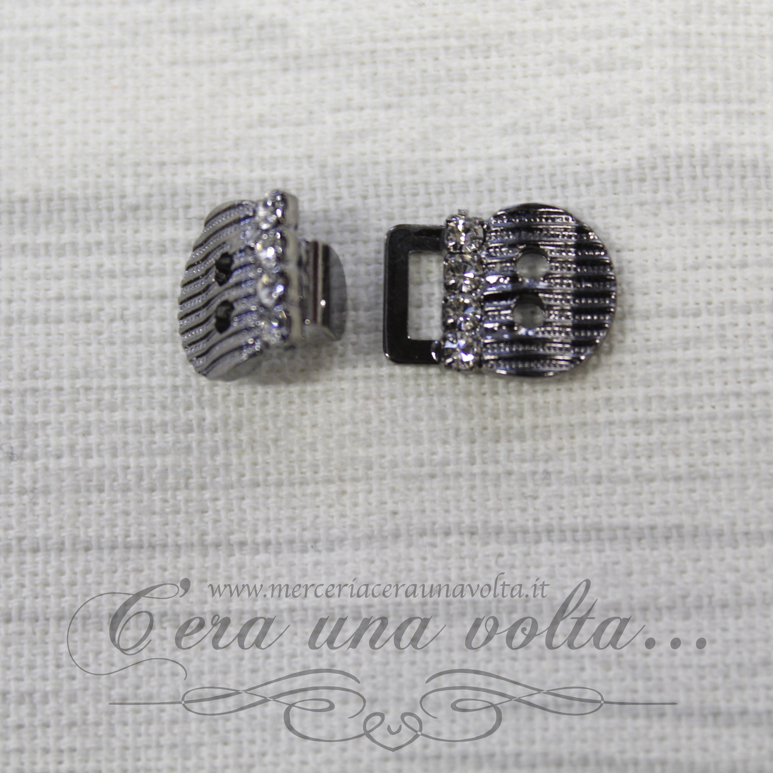 Ganci per abbigliamento con 8 micro strass centrali ( 4 per ogni gancio) composto da 2 elementi finemente lavorati