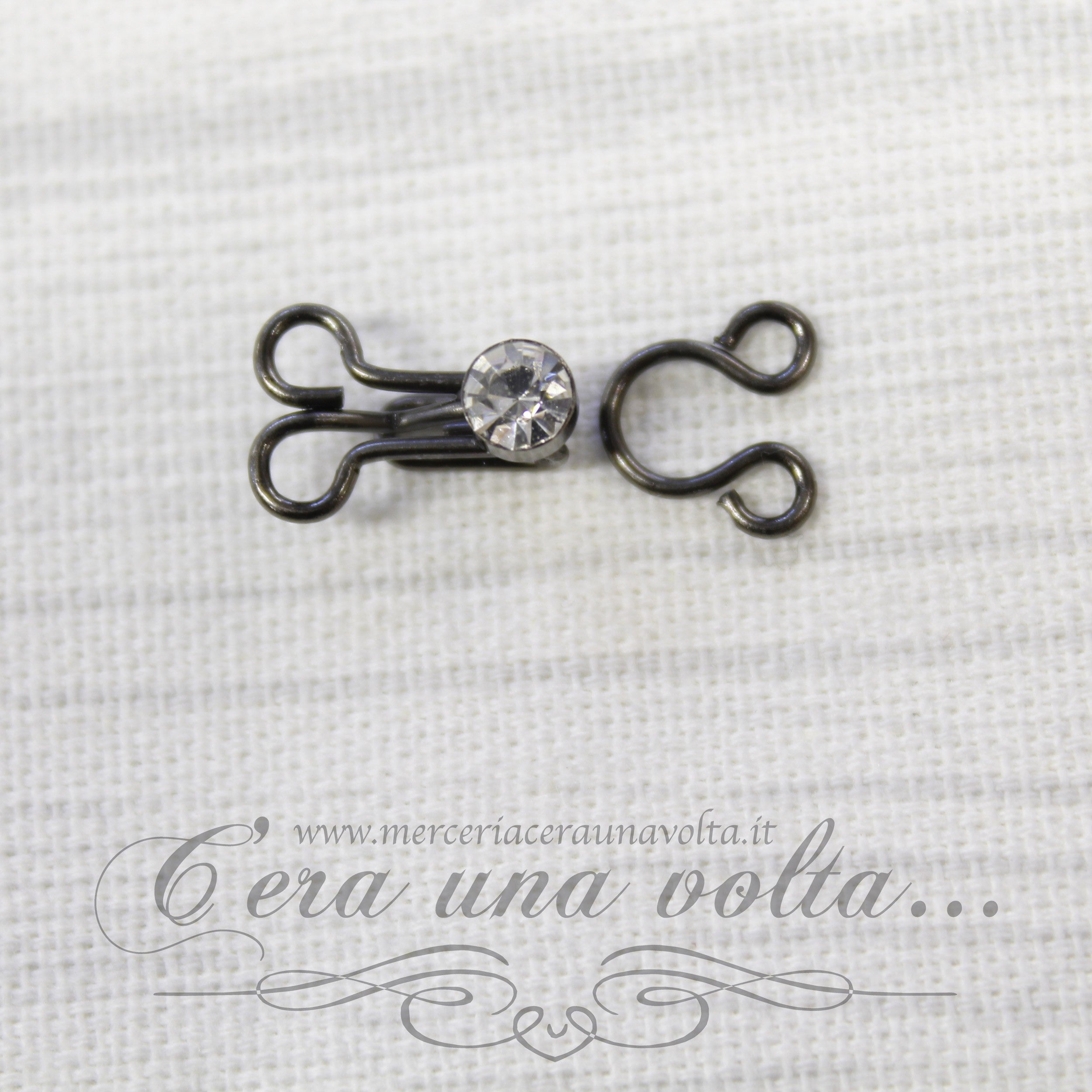 Il gancio per abbigliamento con strass è generalmente usato per tenere unite due parti di un capo d'abbigliamento, un'accessorio raffinato ed elegante.