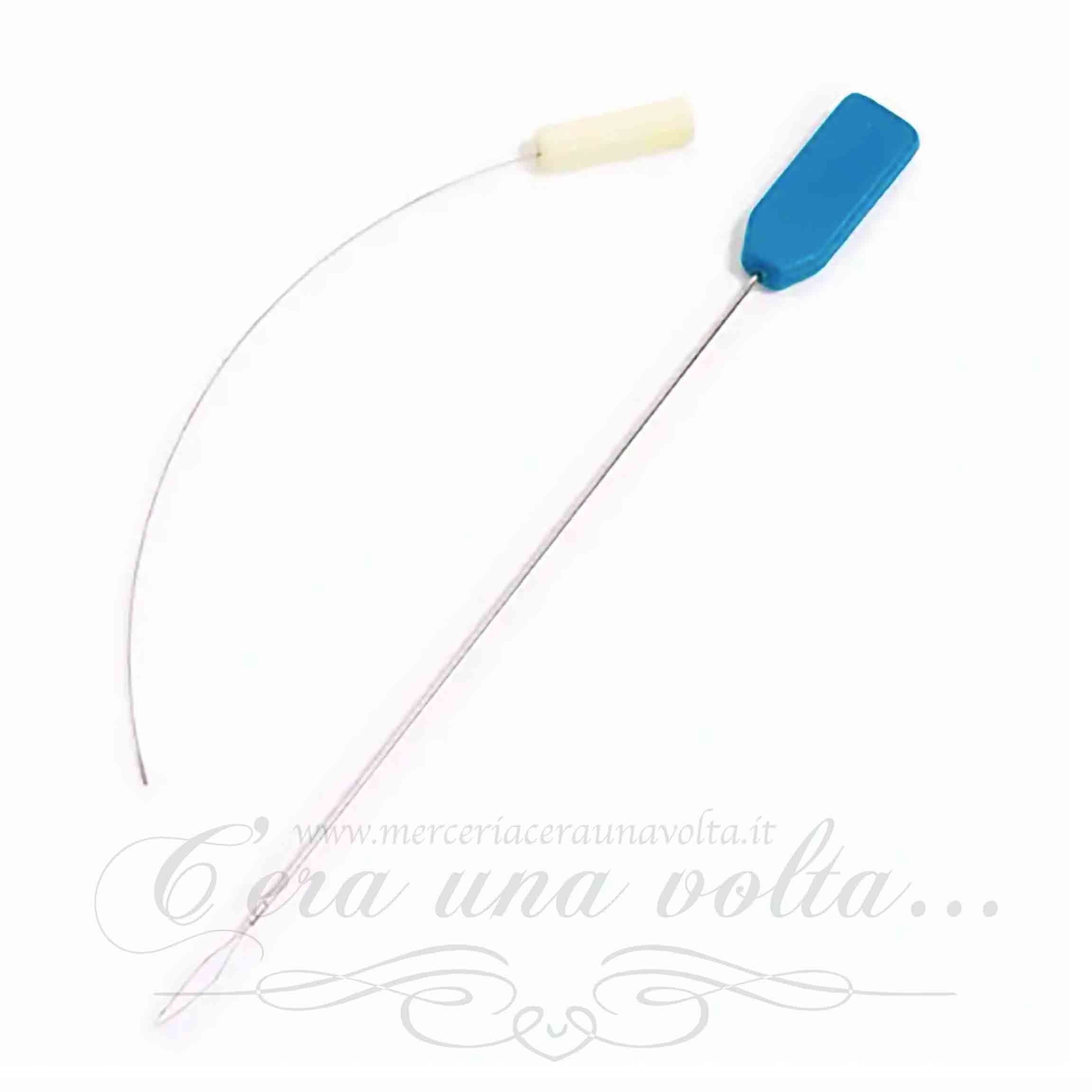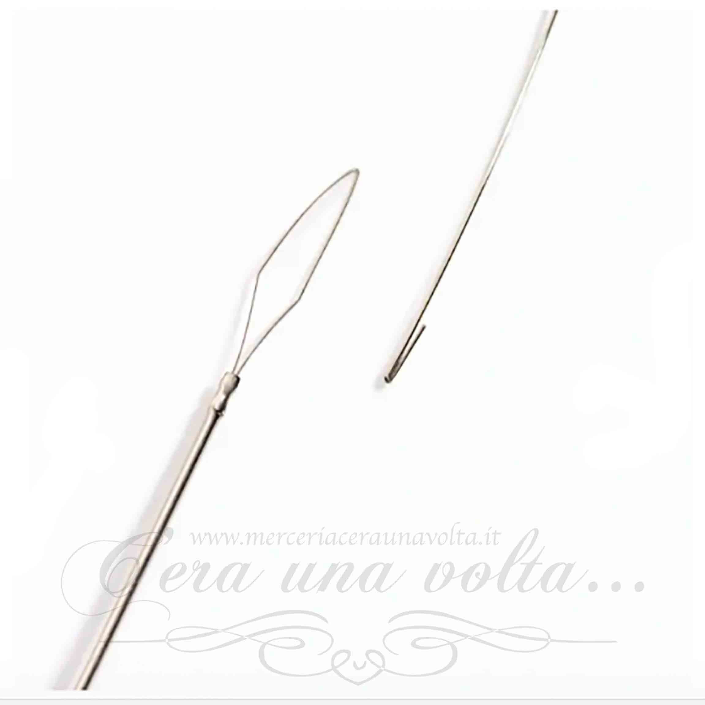 Il 2° pezzo è costituito da un filo sottile con punta a rombo in acciaio flessibile a molla, si inserisce facilmente appoggiandolo vicino al foro per infilare e si fa passare attraverso il foro, infilare il filo sull'anello del rombo e tirare. Ideale per qualsiasi lavoro di cucito sia a macchina che a mano grazie alla possibilità di infilare aghi sia con la cruna sottile che grande. Il prodotto è universale: adatto a tutti i tipi di aghi.