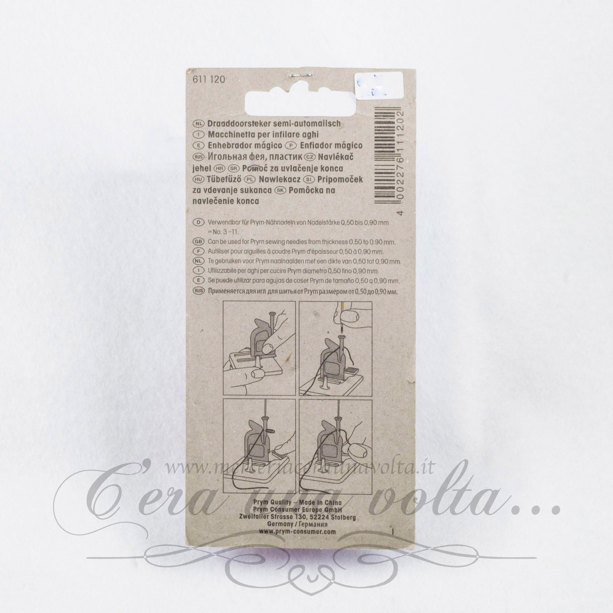 Macchinetta per infilare aghi da cucito di varie dimensioni e con qualsiasi cruna: grande o piccola, con portarocchetto e lama tagliafilo.