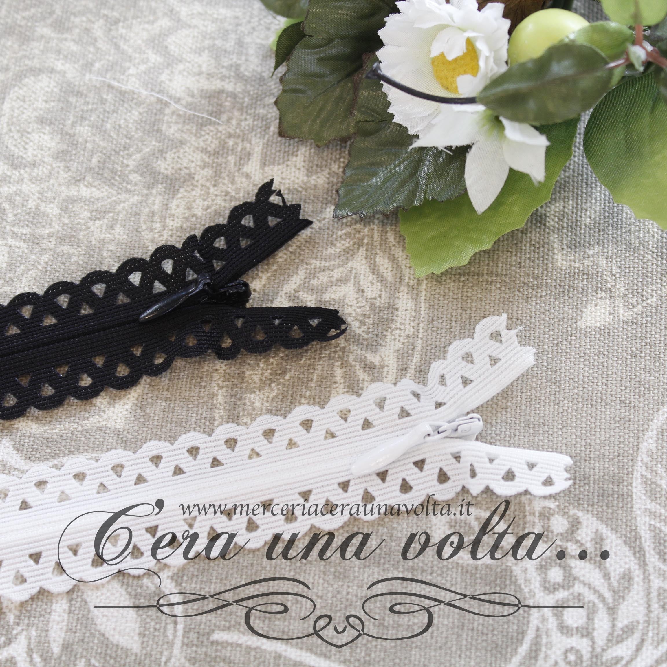 Lampo fissa invisibile (non divisibile)con motivo a pizzo, con catena sottile in nylon, perfetta per dare un tocco romantico alle tue creazioni. Disponibile in 4 Colori