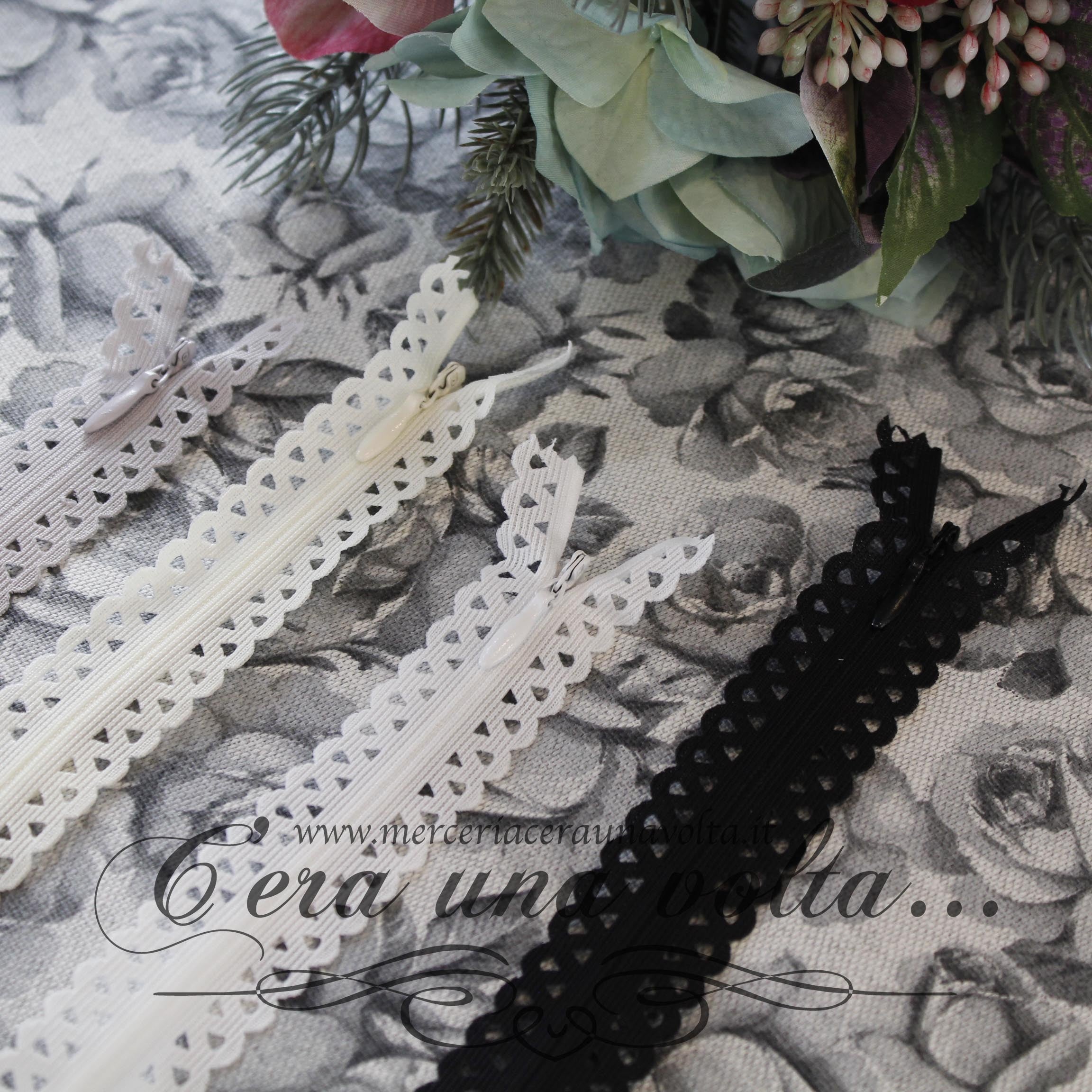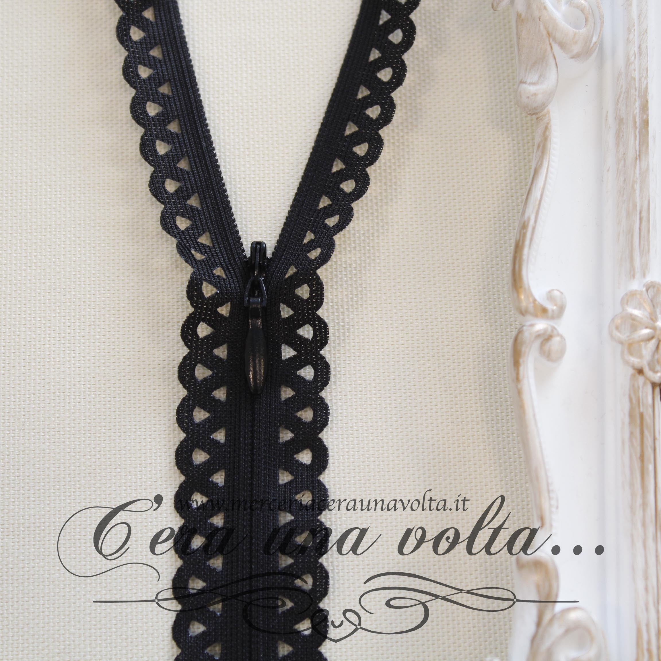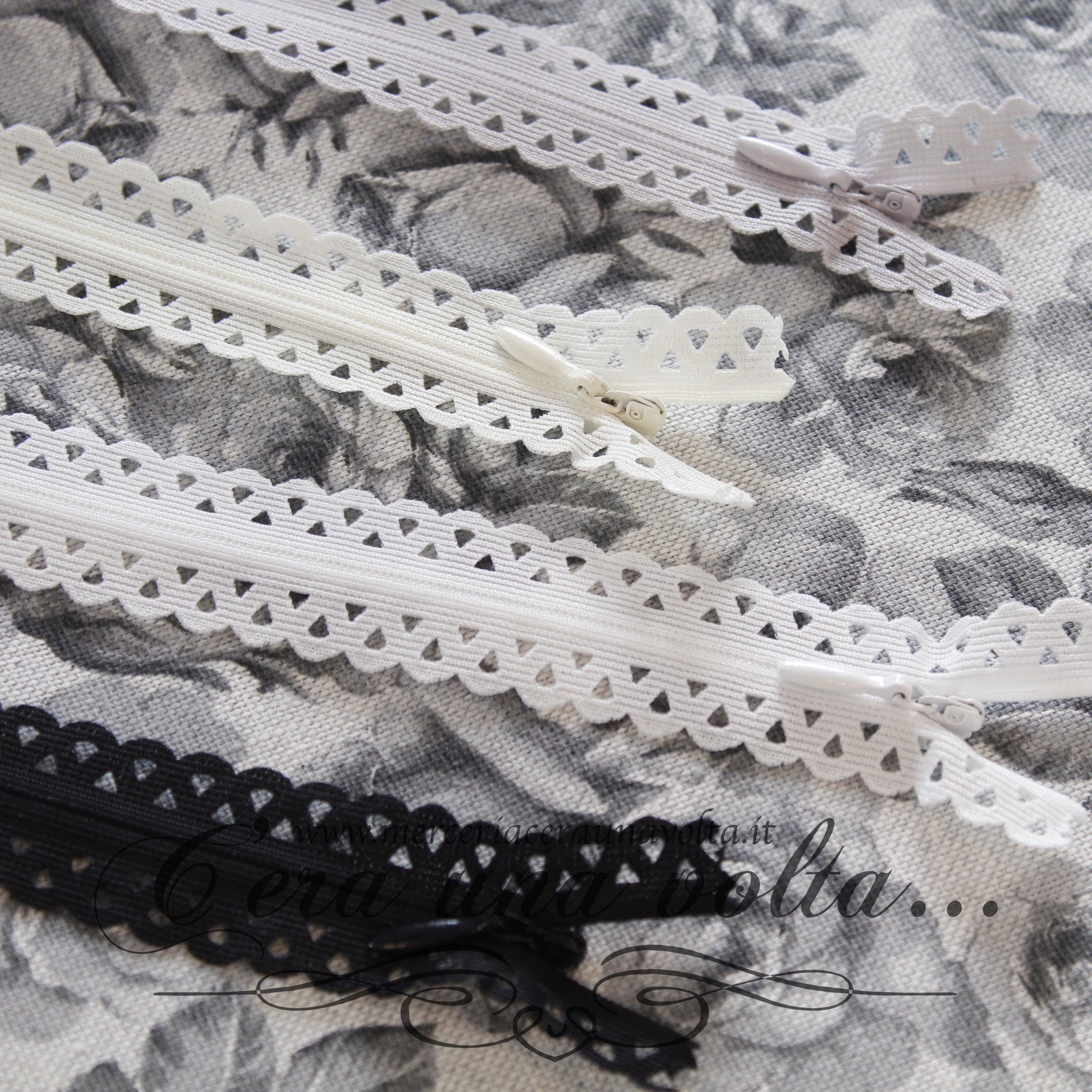 Lampo fissa invisibile (non divisibile)con motivo a pizzo, con catena sottile in nylon, perfetta per dare un tocco romantico alle tue creazioni. Disponibile in 4 Colori