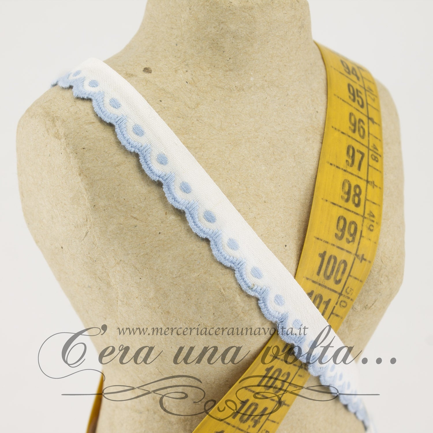 Merletto in Sangallo con ricamo colorato.Intramontabile, sempre attuale disponibile in 3 varianti su base biancaColori Celeste Giallo Rosa Materiale 100% CotoneAltezza...