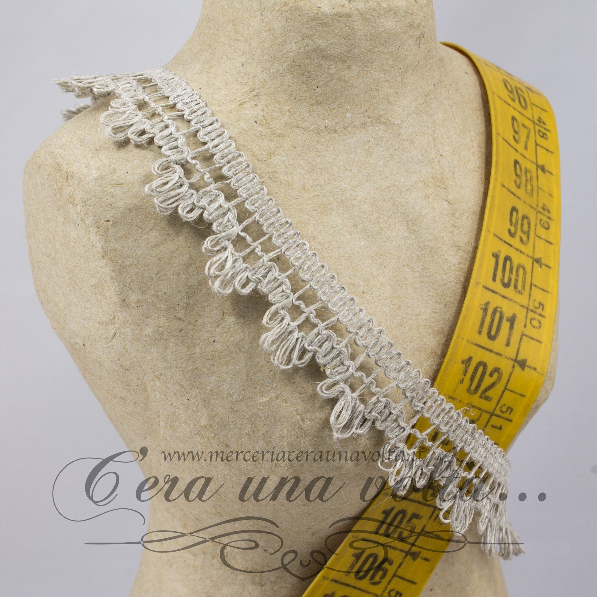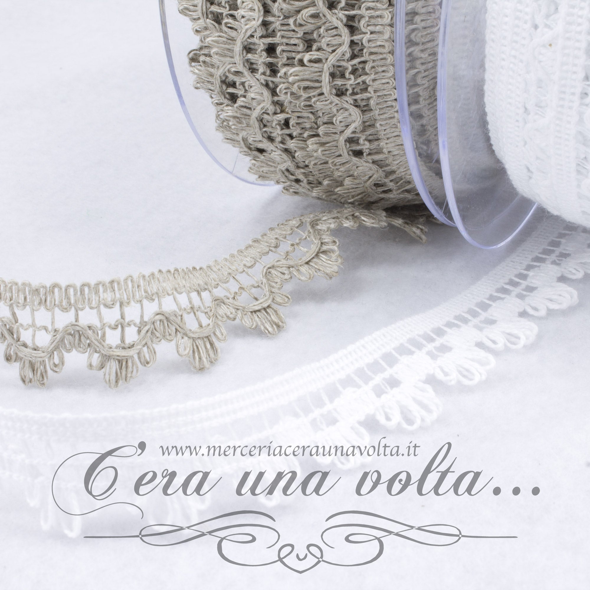Delicato merletto con lavorazione atombolo, con smerlo Disponibile in 2 variantiColori Bianco Grigio Sabbia Materiale 50% Cotone 50% linoAltezza 2 cmPesantezza leggeraUnità di...