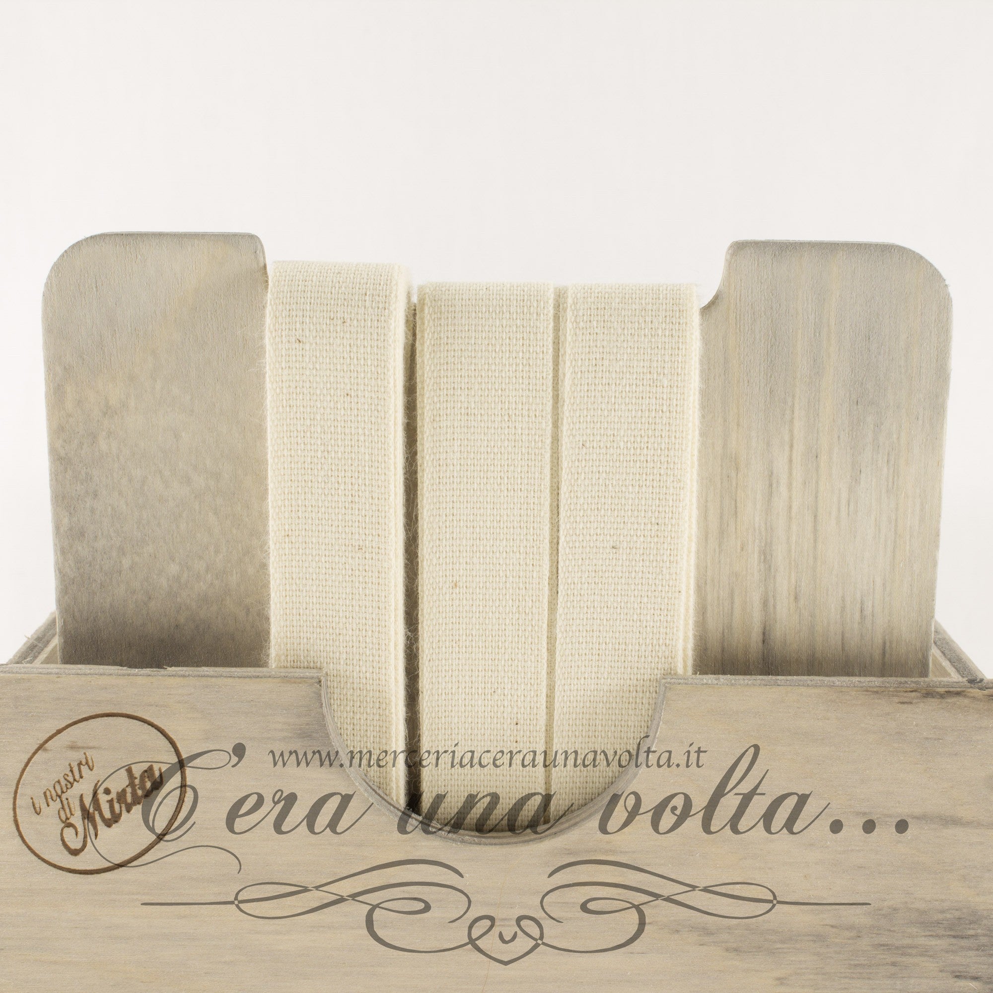 Nastro fettuccia di cotone, impiegato soprattutto in sartoria come spessore per cuciture su tessuti leggeri, per coprire orli o per creare arricciature. Trova largo uso nel cucito creativo grazie alla sua tessitura a tela,perfetta per uno stile shabby. Disponibile in 35 varianti