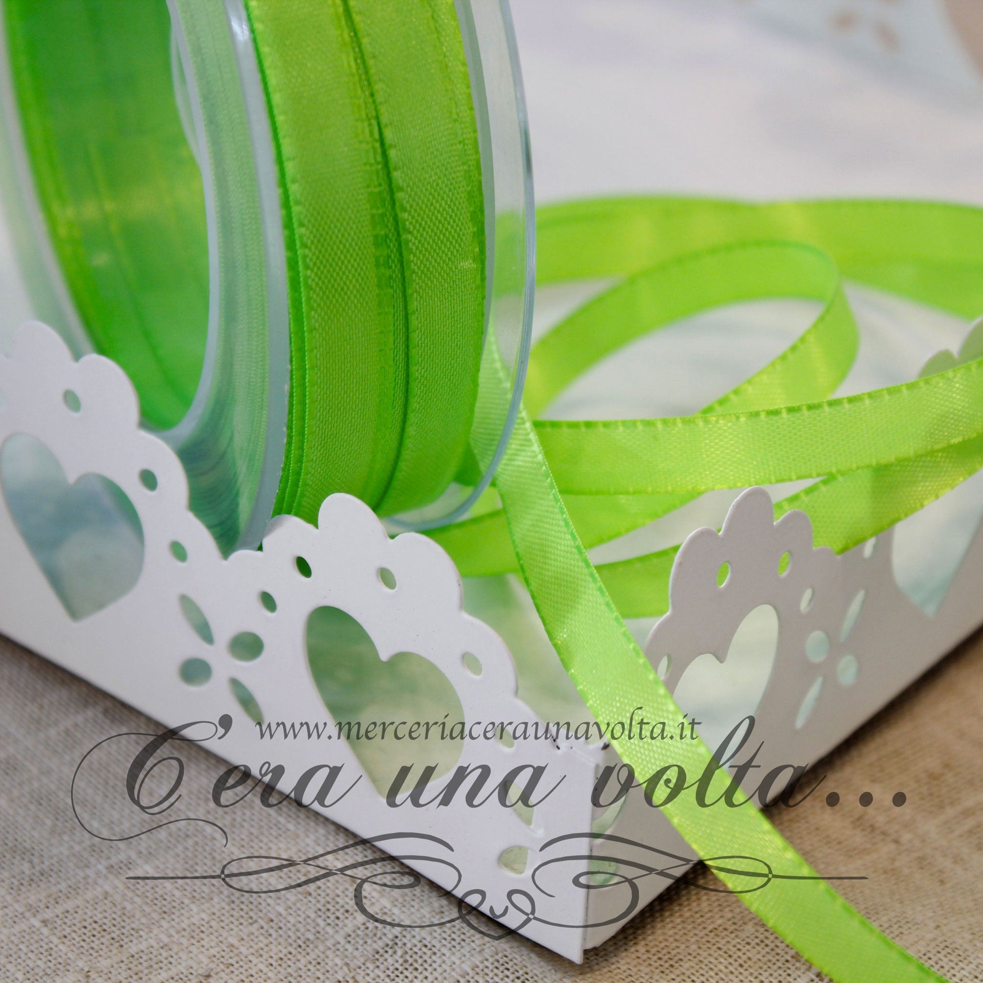 Nastro fluorescente in taffetà, un nastro dal colore esuberante e tipicamente estivo, un tocco di luminosità che attira lo sguardo e dona allegria, per trasformare le vostre idee, in qualcosa di artisticamente brioso e vivace