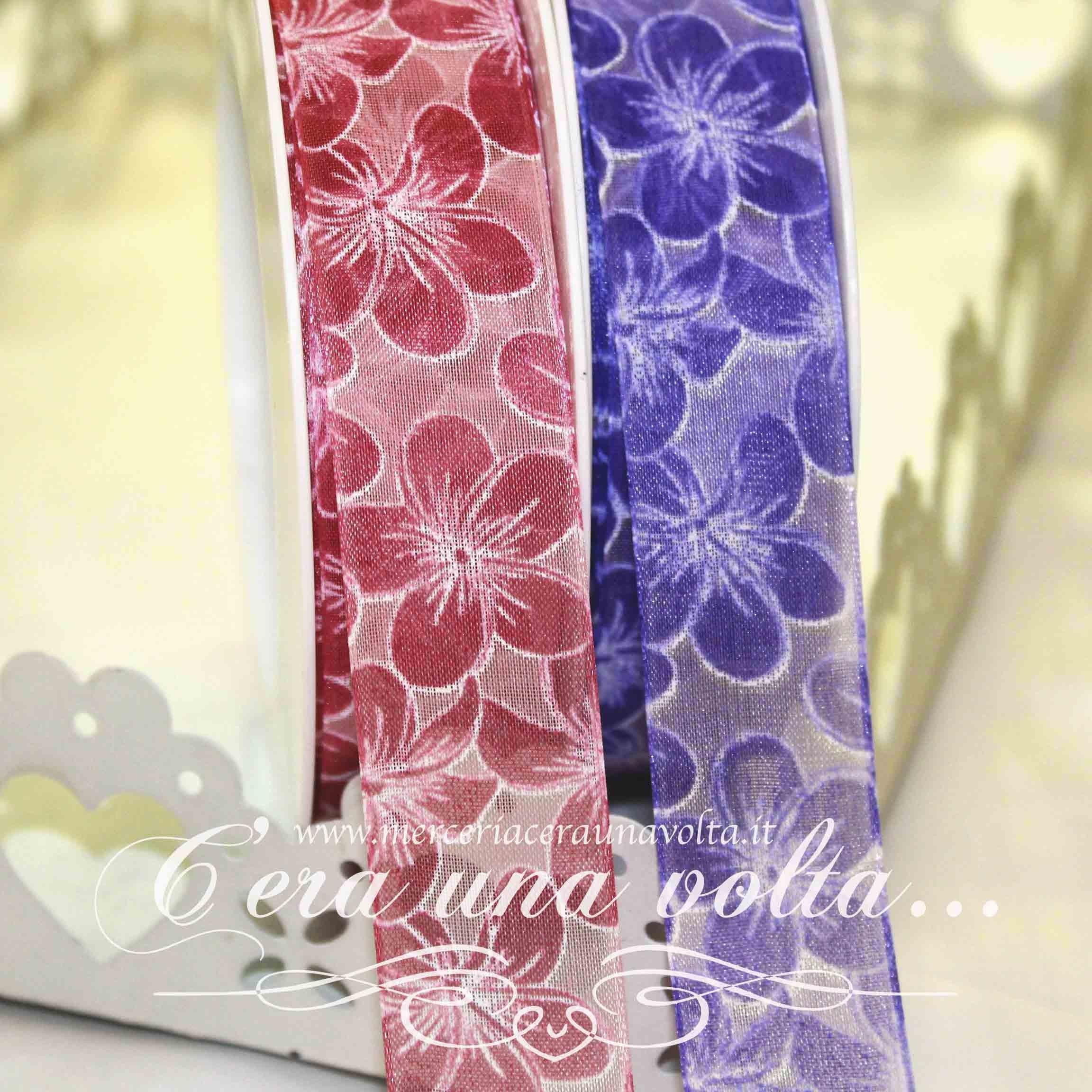 Delicato nastro in organza, impalpabile e trasparente, dove spiccano rigogliosi fiori che mostrano con fierezza le loro sfumature colorate, un design romantico ed evocativo.Dotato ai lati, di un sottile filo in metallo, che permette di dare la forma desiderata alla tua creazione. Disponibile in 4 varianti