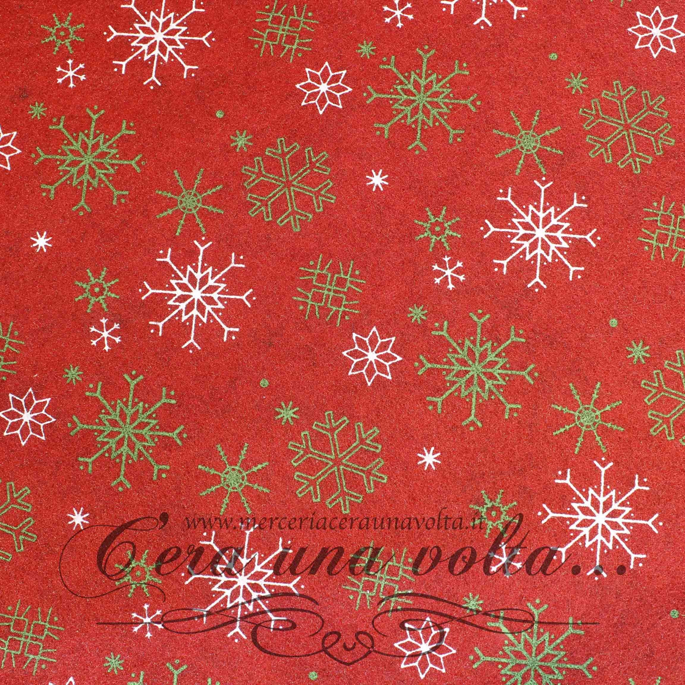 Tessuto pannolenci serigrafato, adatto per lavori di hobbistica, decorazioni, pupazzi, vestitini, patchwork, cucito creativo.Dimensione foglio 75 cm x 50 cmSpessore 2 mm circa.Colore Rosso Scarlatto...