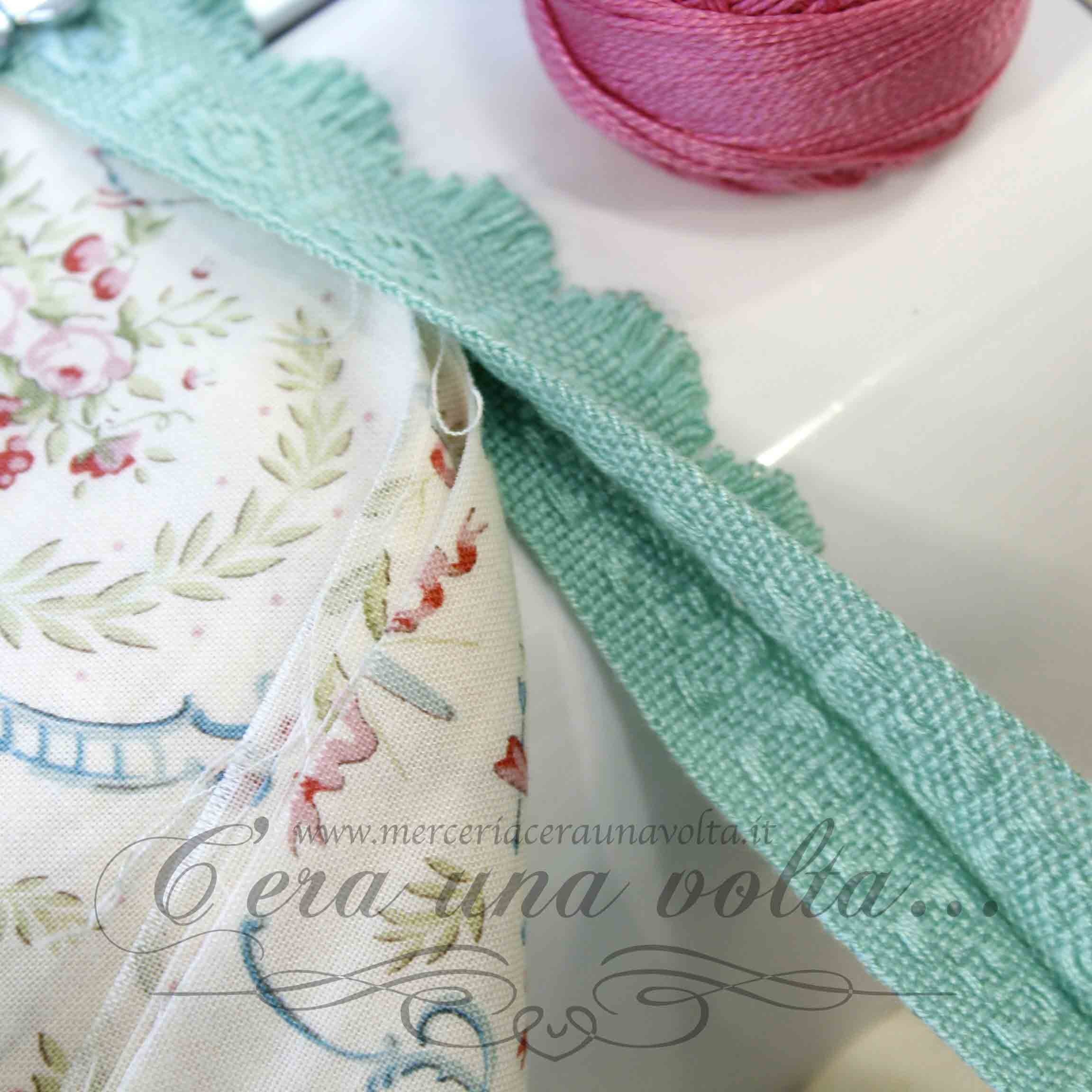 Passamaneria con tasca, ideale per rifinire tende, mantovane, calate, tovaglie, cuscini, ma anche capi di abbigliamento e accessori. Si inserisce il tessuto all'interno della tasca e si cuce, rimarrà rifinito senza sfilare da entrambi i lati. Disponibile in 14 varianti.