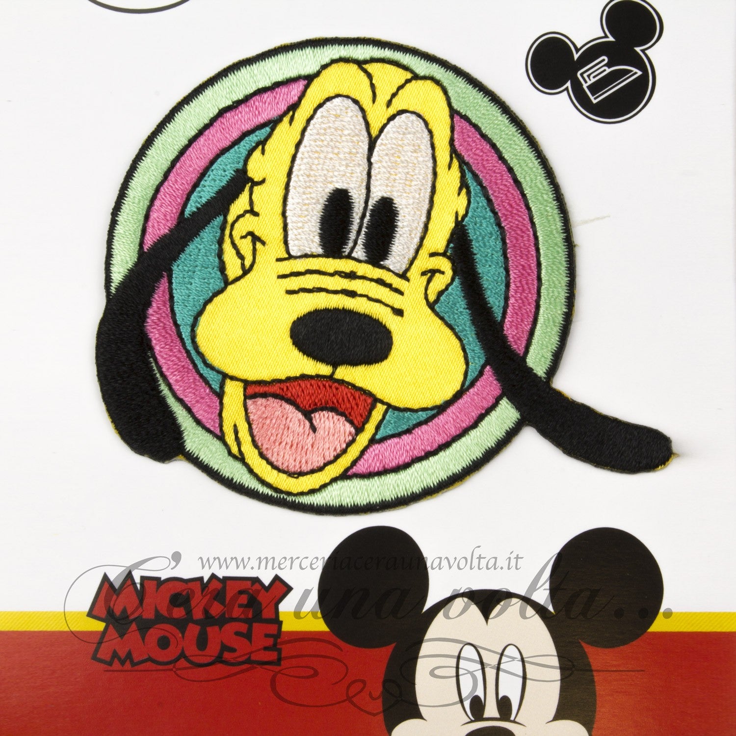 Patch toppe Disney Pluto per abbellire i tuoi capi d'abbigliamento, coprire una macchia,riparare uno strappo o un bucoDiametro: 7 cm.Forma: circolareComposizione: 100%...