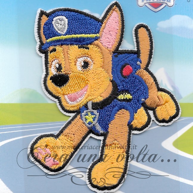 Patch toppe Paw Patrol Chase, ideale per abbellire i tuoi capi d'abbigliamento, coprire una macchia, riparare uno strappo o un bucoMisure: h...