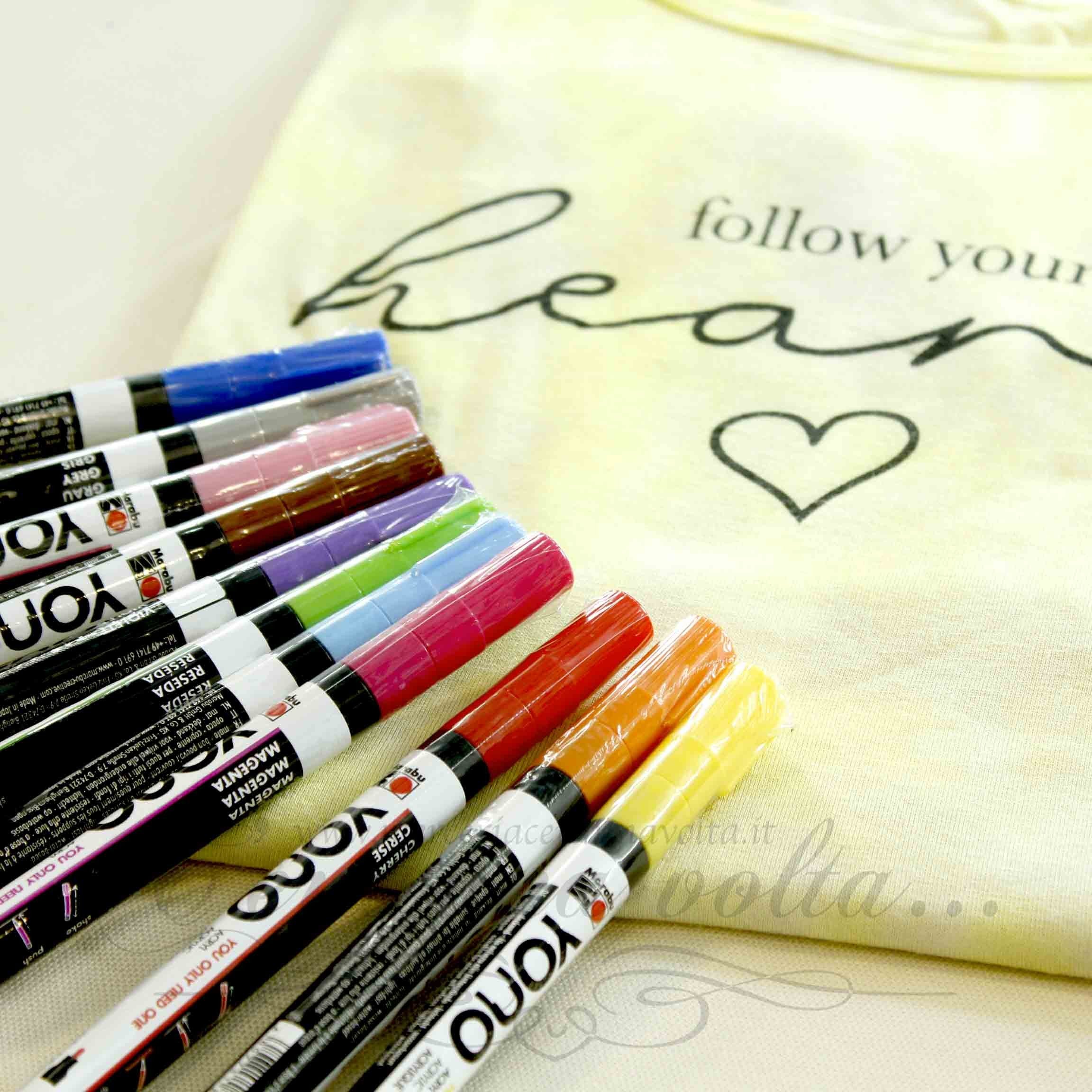 Pennarello a punta media. Utilizzabile su varie superfici quali stencil, tessuti lisci e ruvidi, plastica e pvc. L' inchiostro è permanente con tratto colorato. Disponibile in 14 varianti di colore