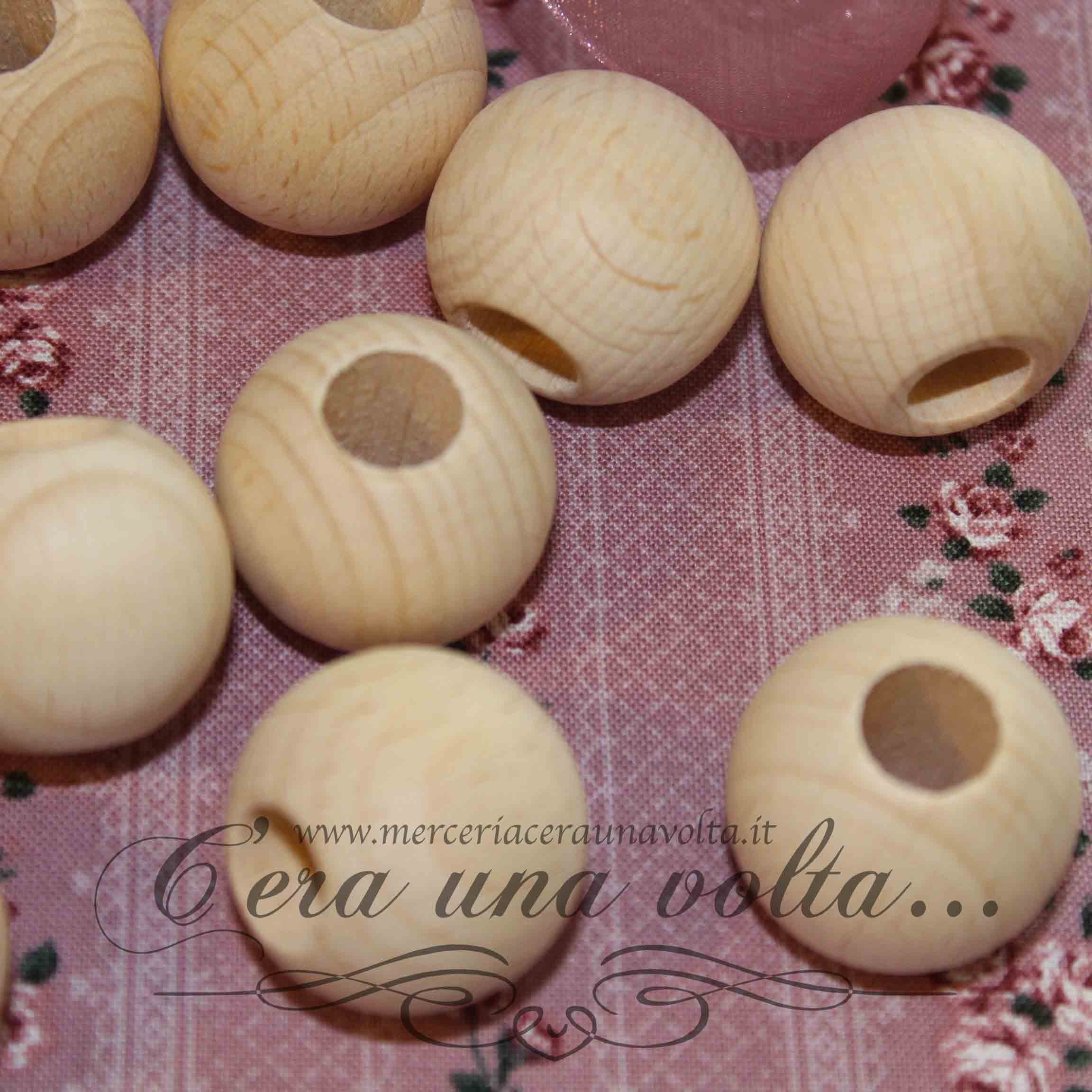 Perle, sfere in legno naturale con foro passante grande, ottima finitura, ideali per decorazioni, modellismo, fai da te, bambole e pupazzi