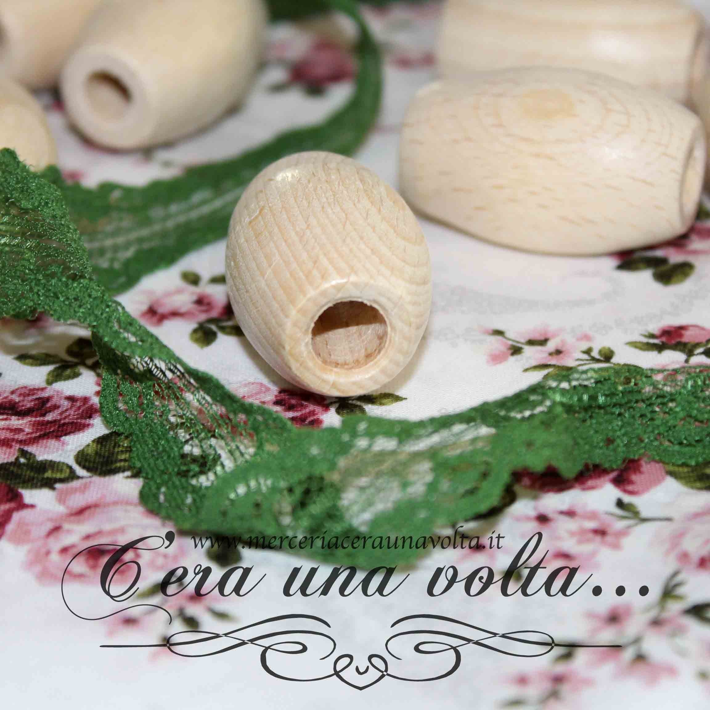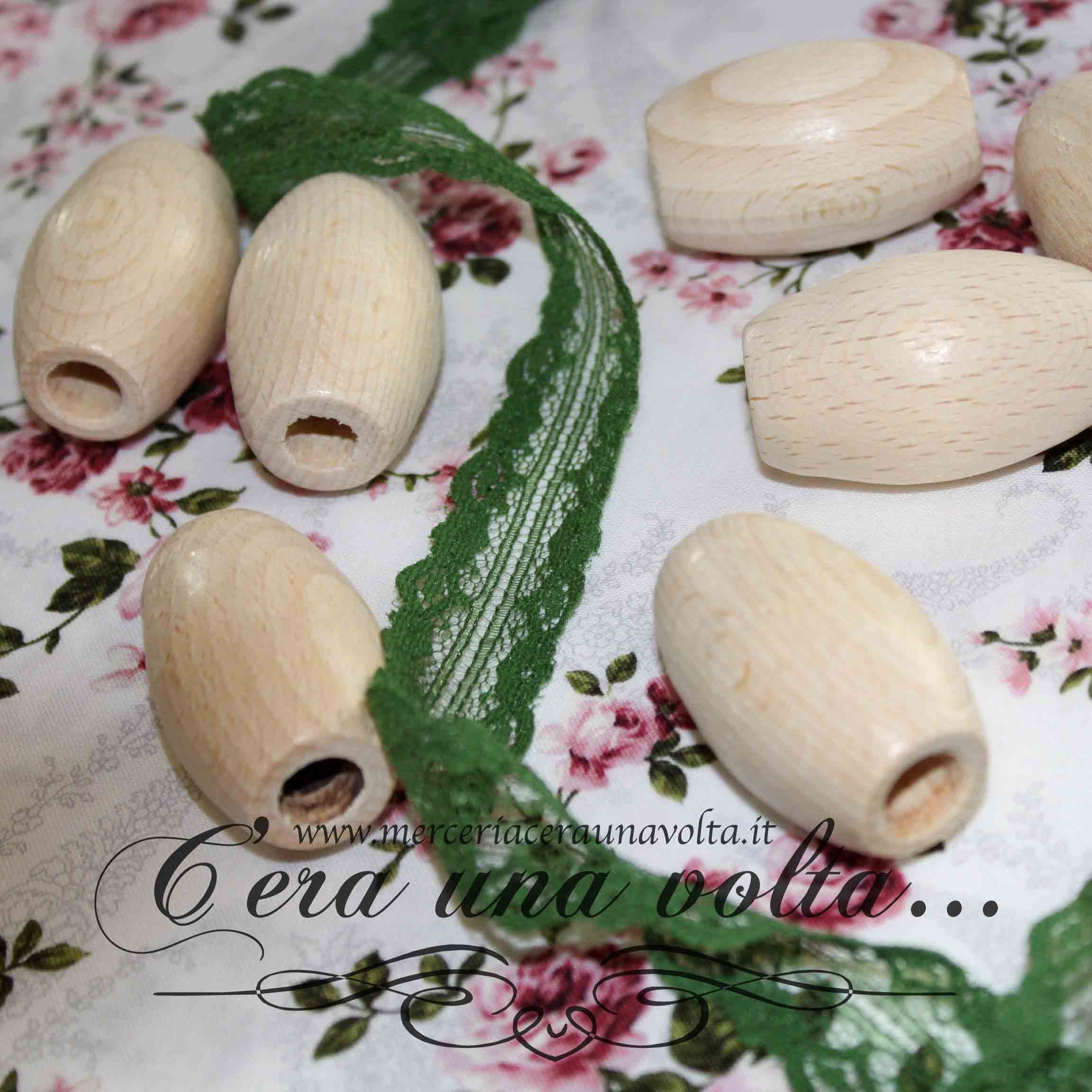 Perle ovali in legno naturale con foro passante grande, ottima finitura, ideali per decorazioni, modellismo, fai da te, bambole e...